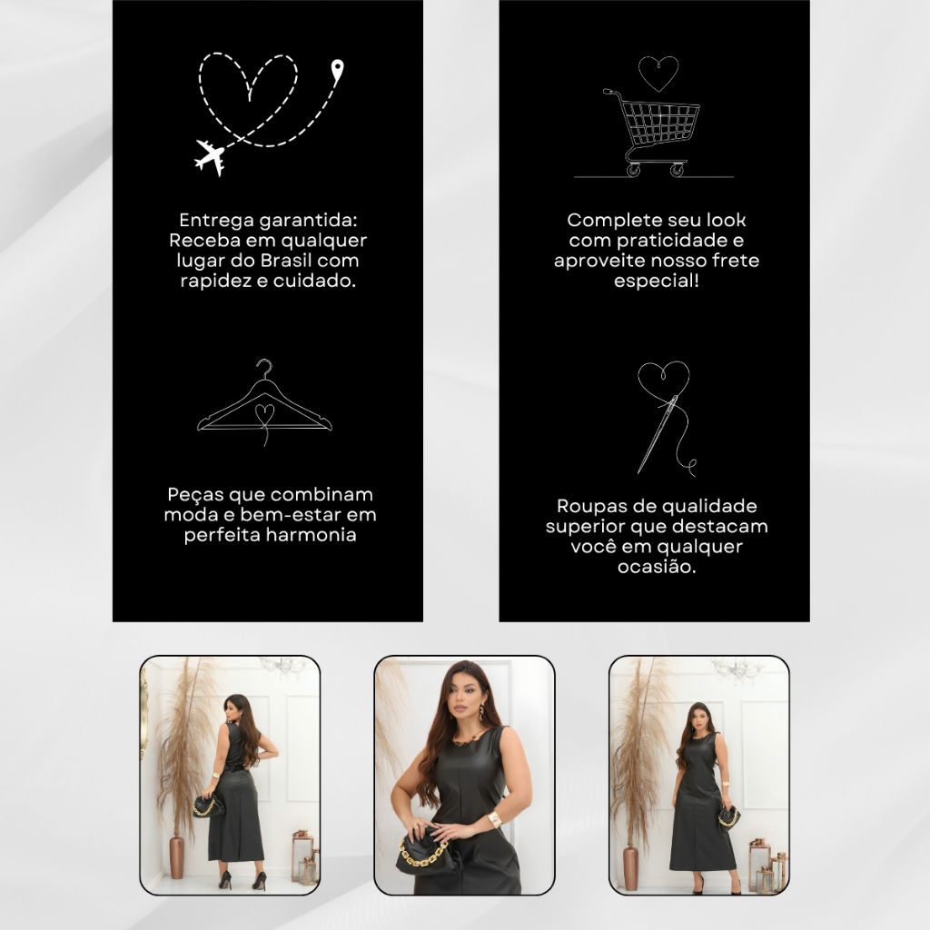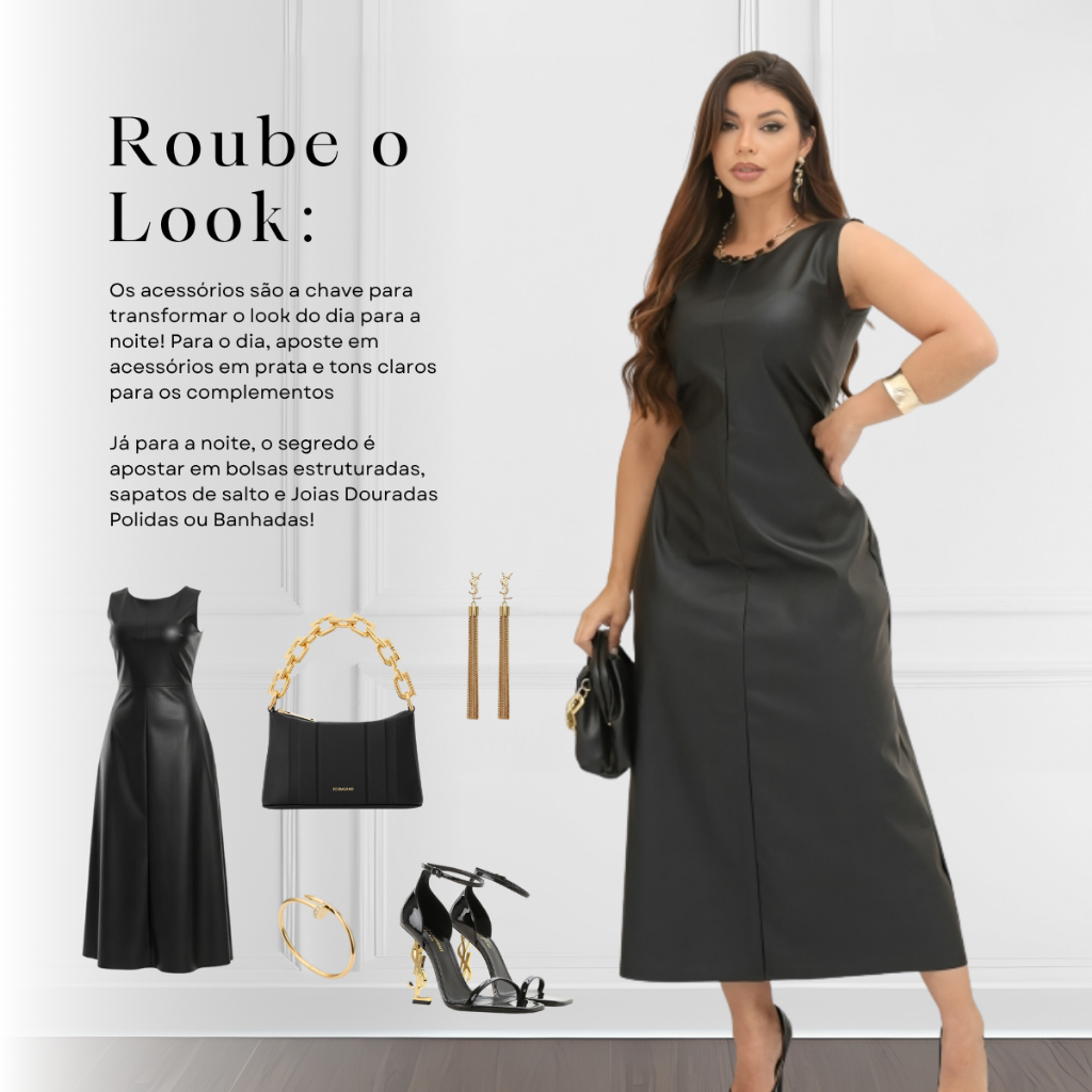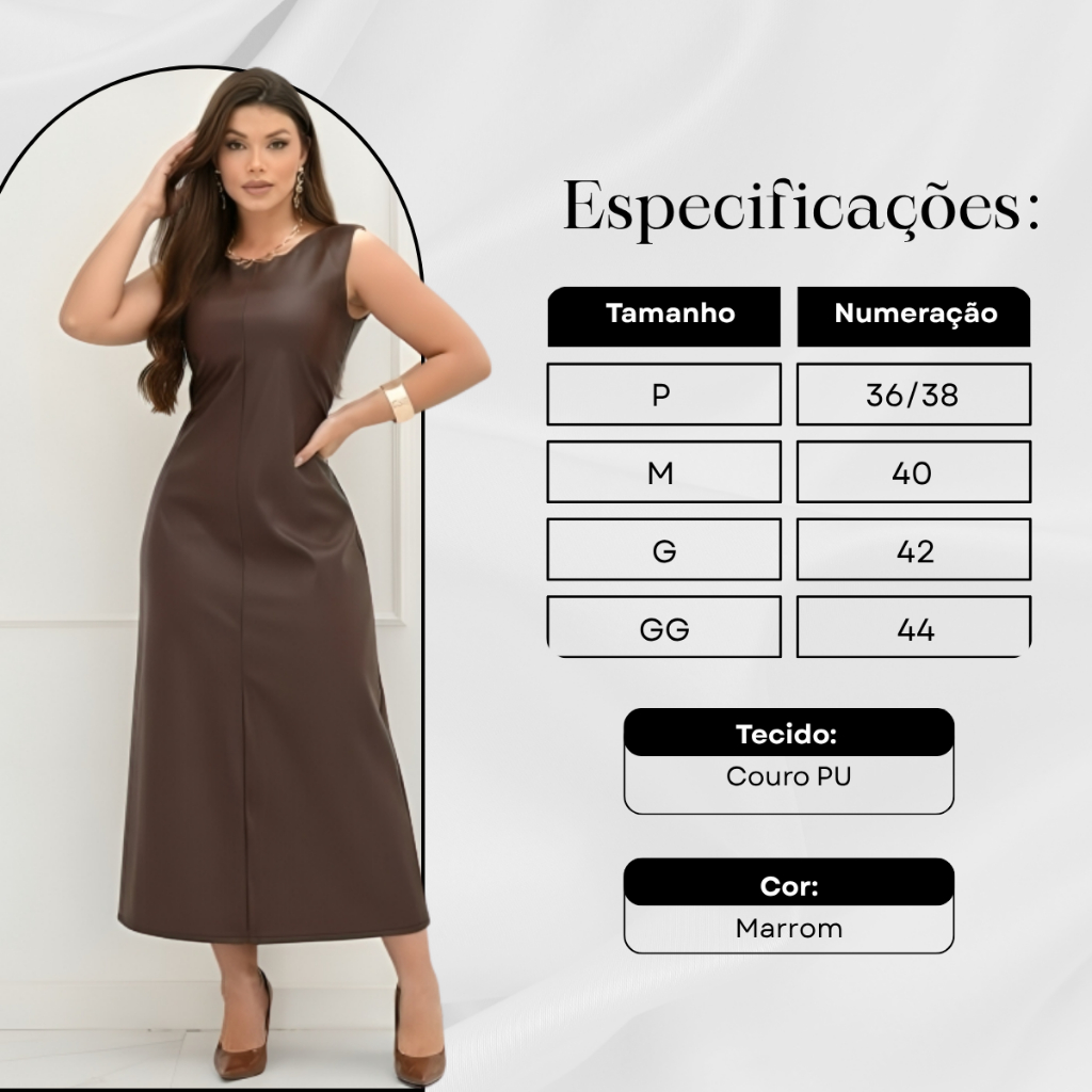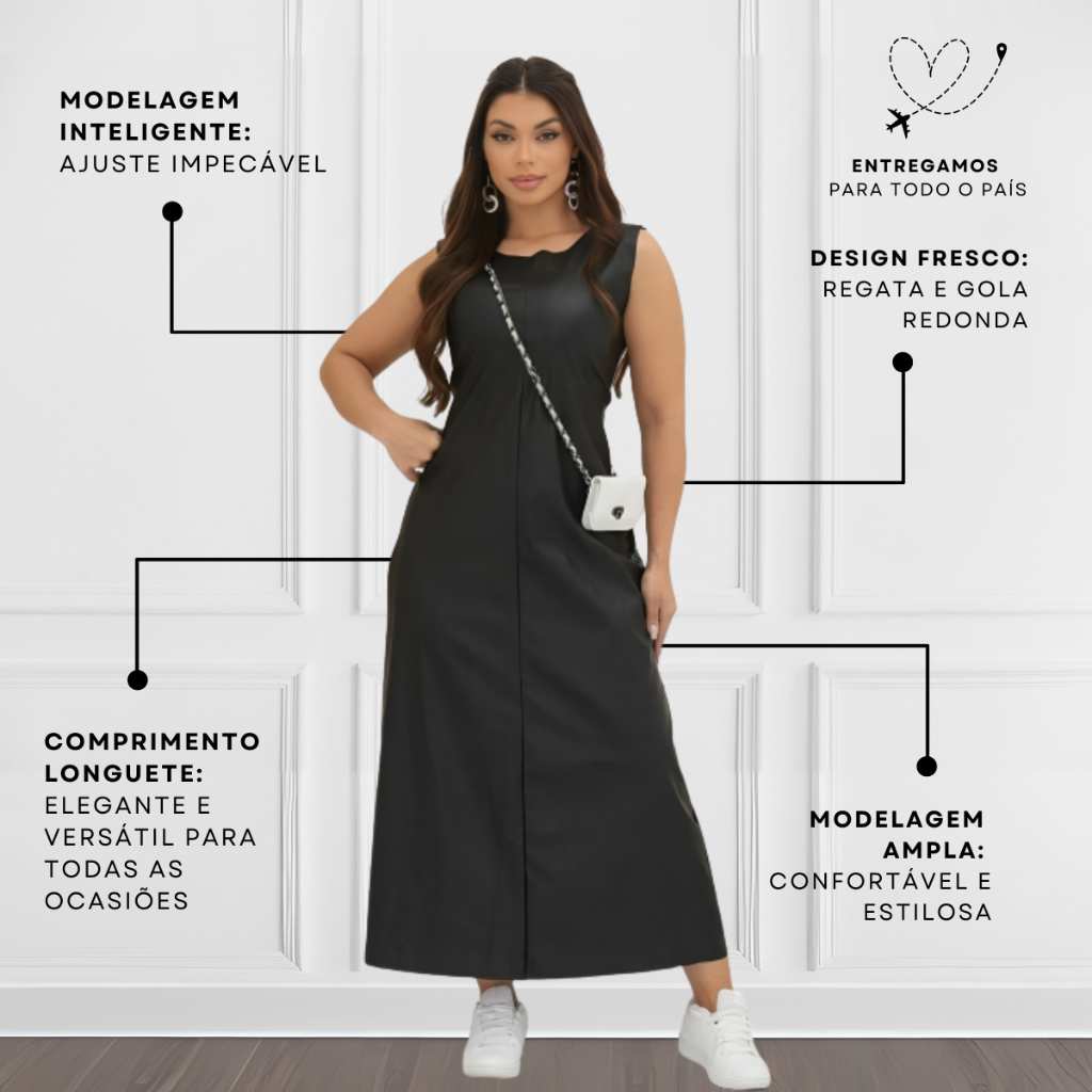 Vestido Feminino Longuete Couro Regata Soltinho Moda Elegante
