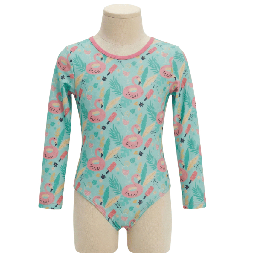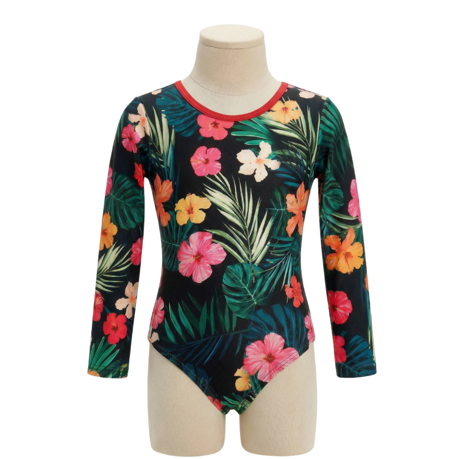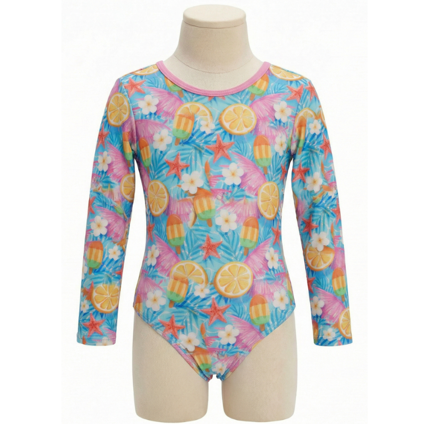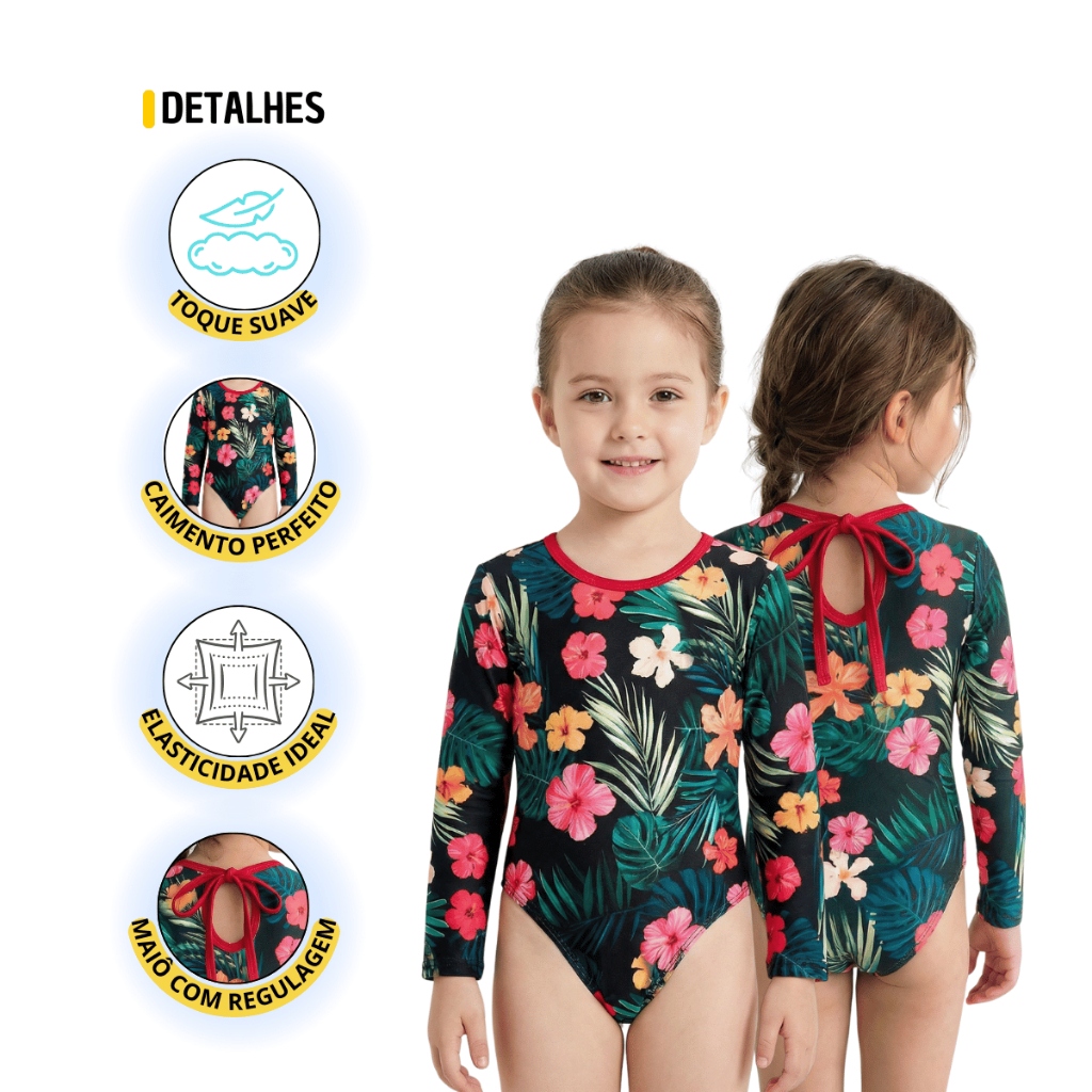 Maiô manga longa infantil/juvenil forrado proteção UV meninas de 2 a 16 anos