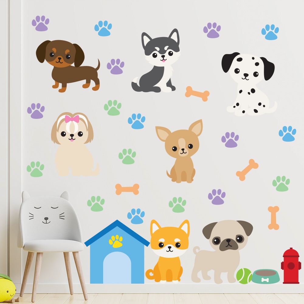 Adesivo de Parede Infantil Dogs Cachorros Pet Shop Quarto Menino Menina - 449ir