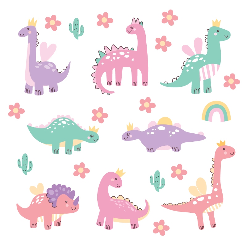 Adesivo de Parede Infantil Dinossauros Dinos Quarto Menina - 496ir