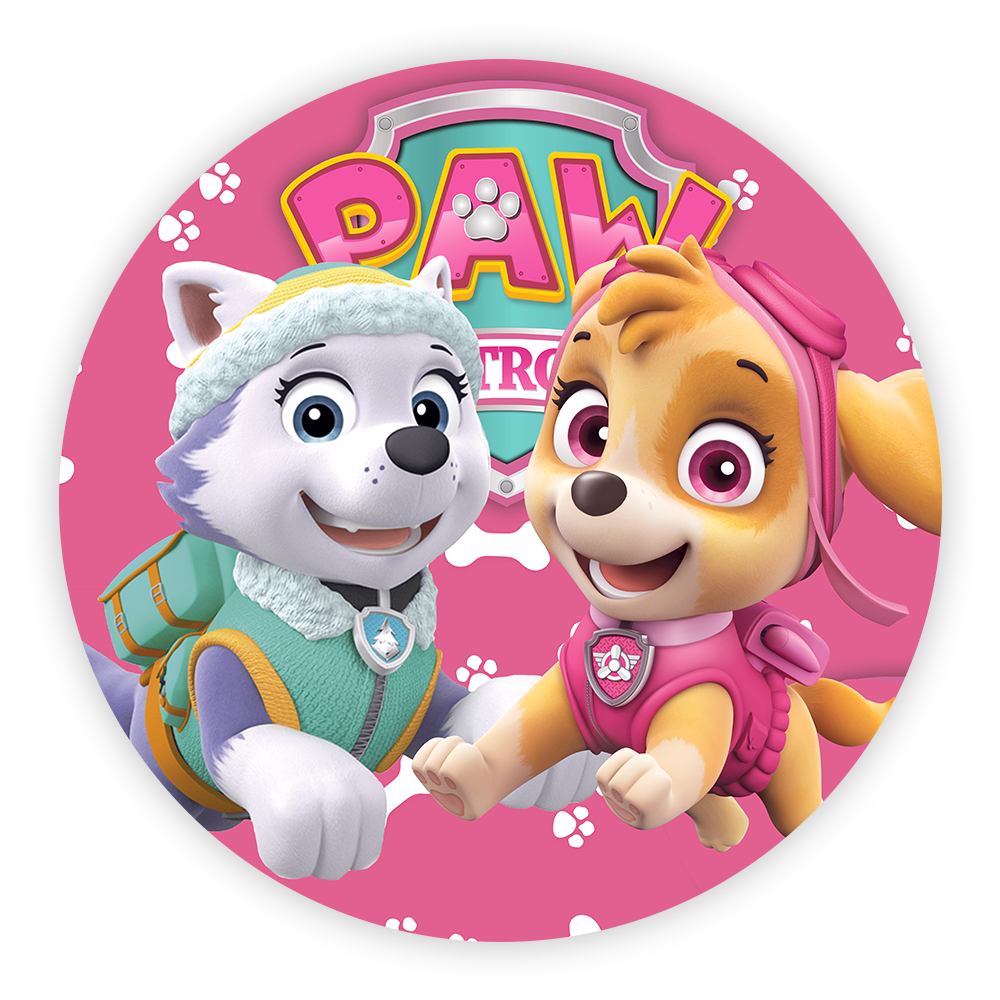Painel de Festa Patrulha Canina Rosa Redondo em Tecido C/elástico Veste fácil