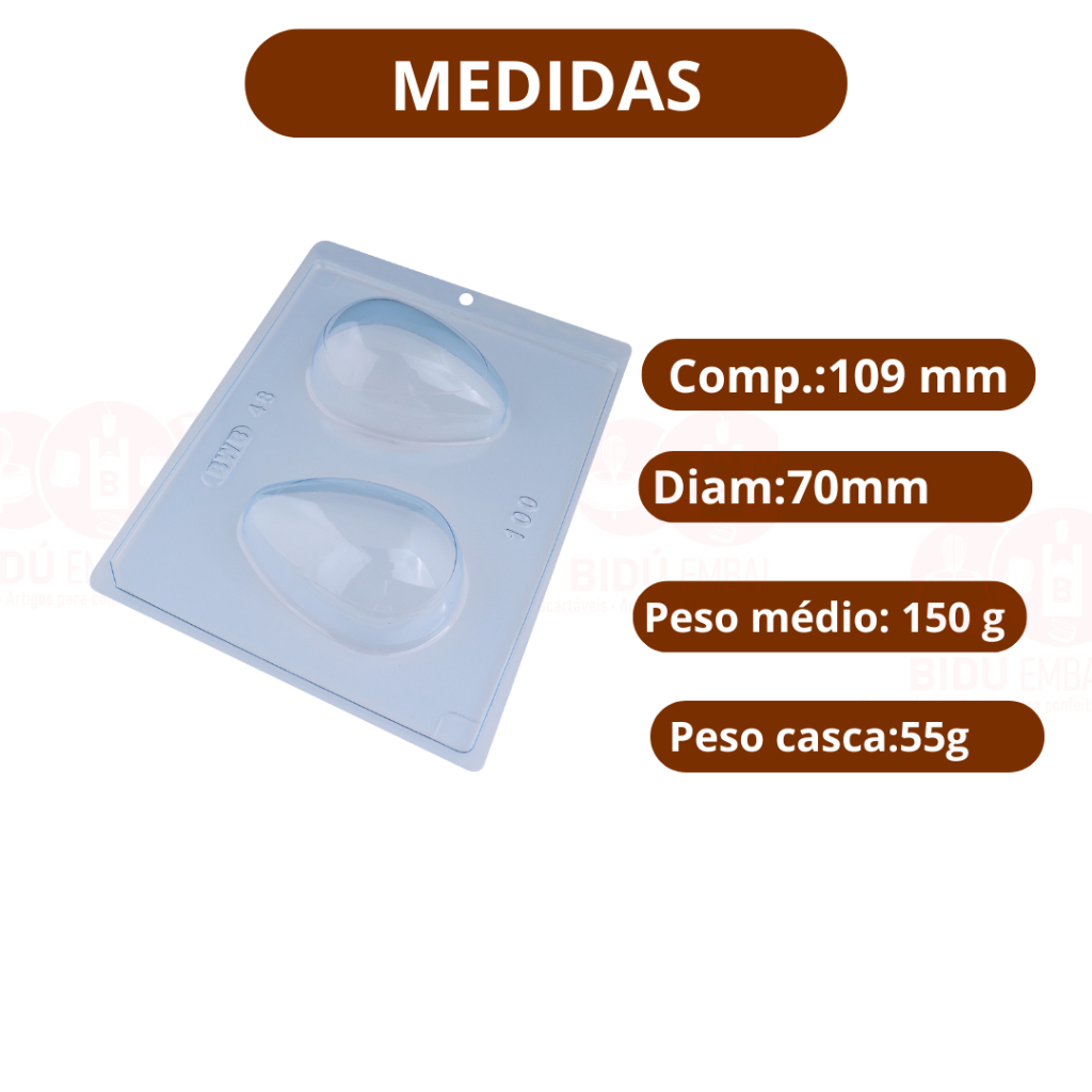 Forma BWB Com Silicone (3 partes) Para Chocolate Cód. 824 - Ovo Liso 150g. Páscoa