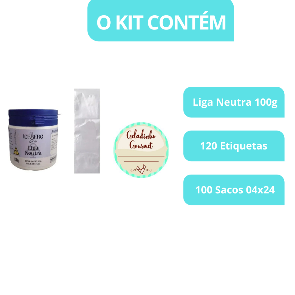 Kit 120 Etiquetas Geladinho Gourmet + 100 Saquinhos para Geladinho + Liga Neutra 100g