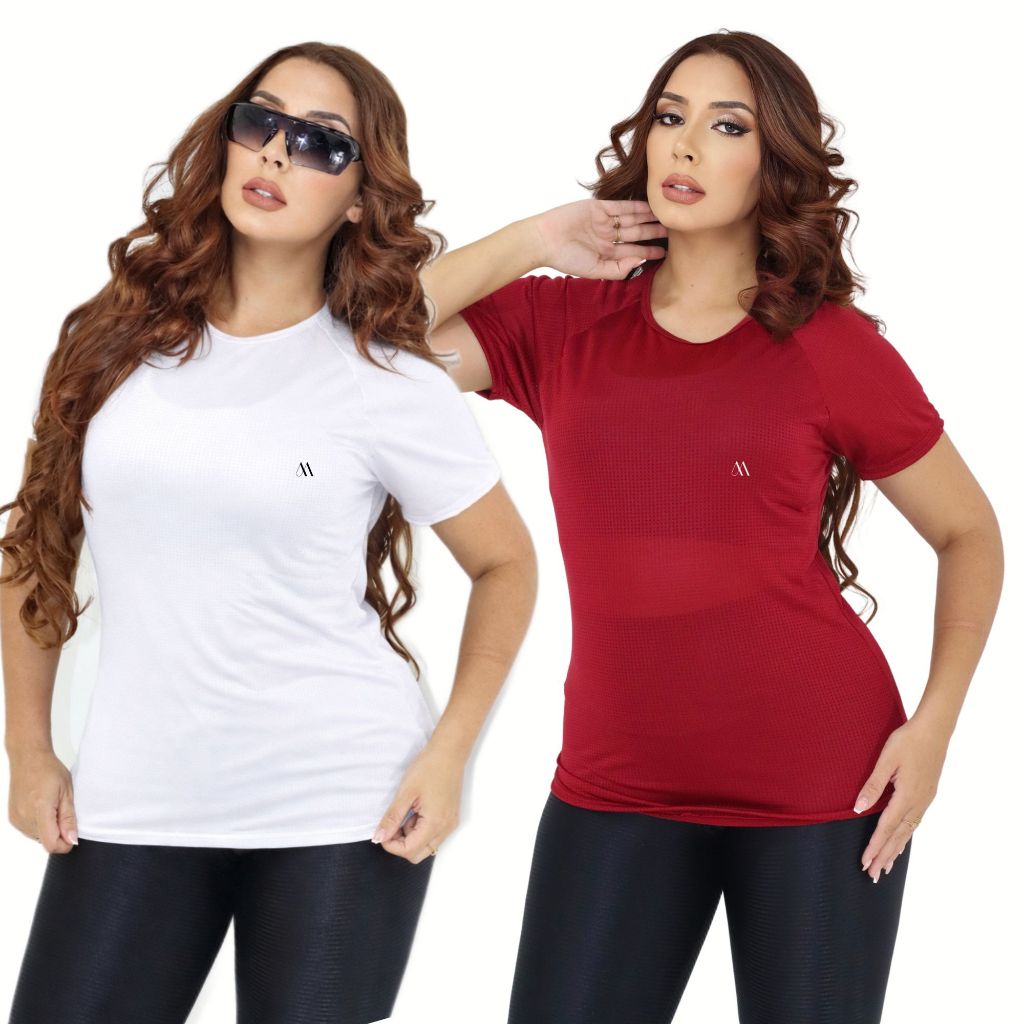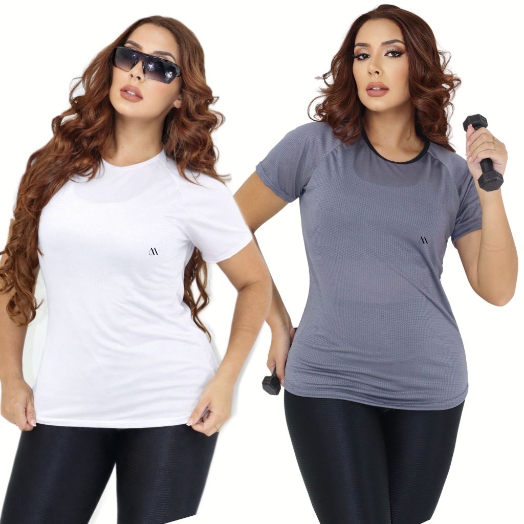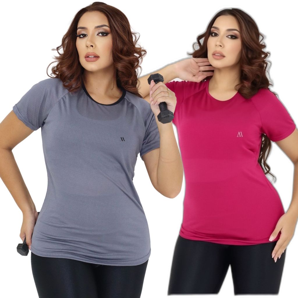 Kit 2 Blusas Feminina Dry Fit Camiseta Academia Camisa Fitness