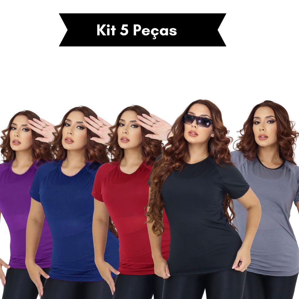 Kit 5 Camiseta Academia Feminina Dry Fit Treino Blusa Caminhada Treino Musculação