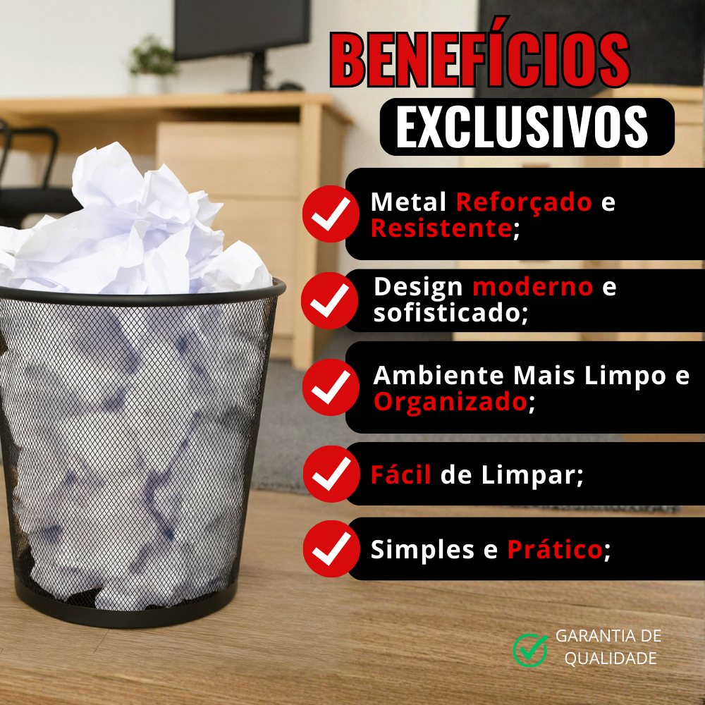 Kit 2 Lixeiras Metal Aramado Cesto Lixo Reforçado 10L Escritório