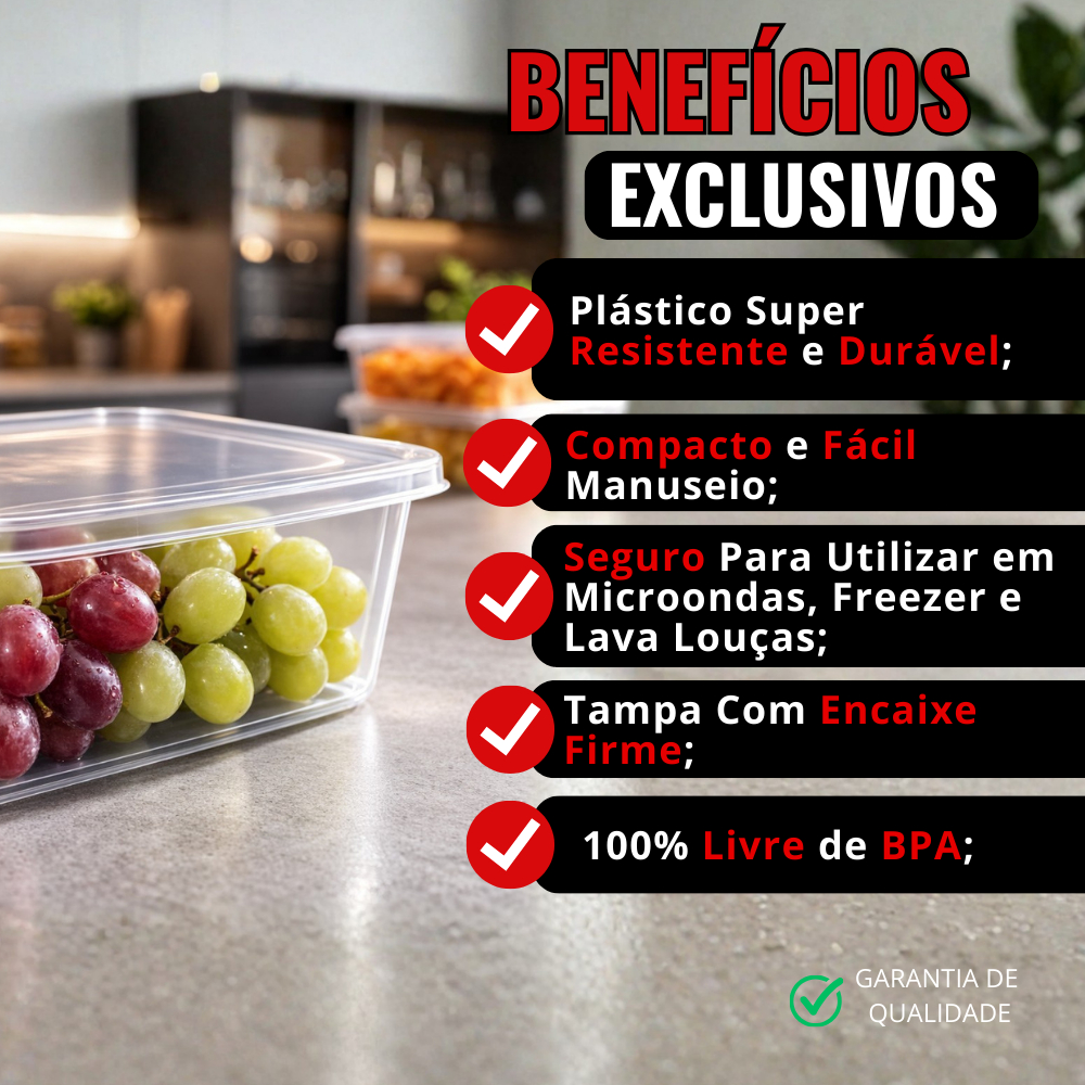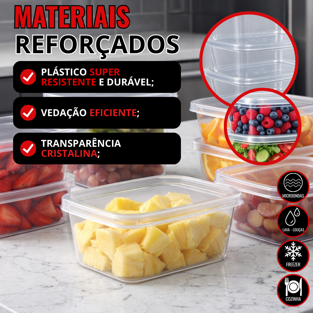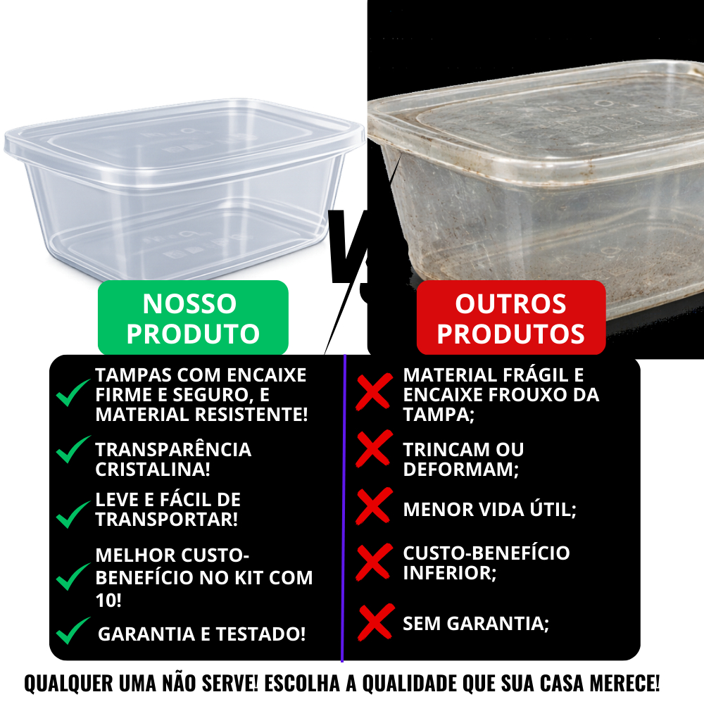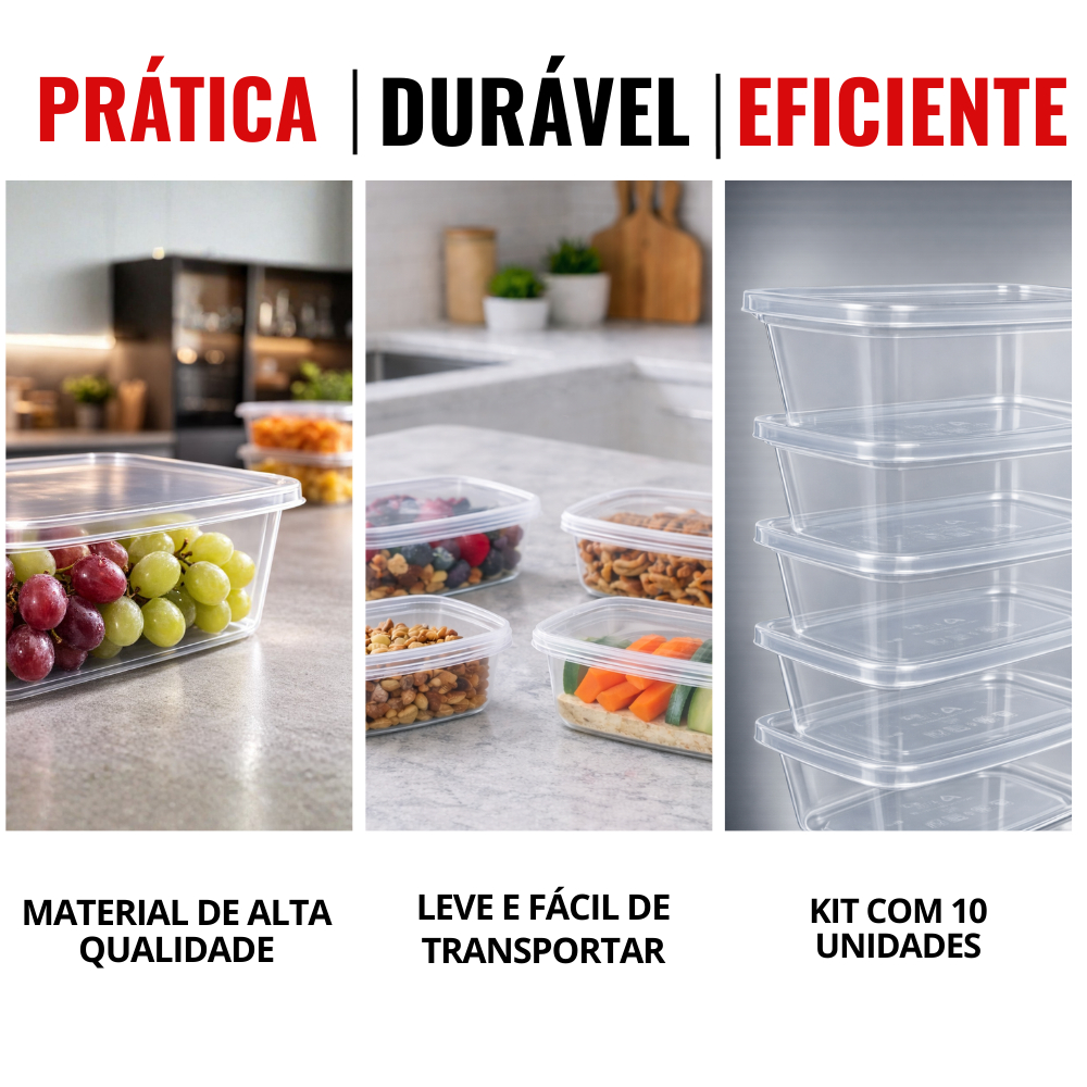 Kit 10 Potes 500 ml Reforçado Transparentes BPA Free Organizador de Alimentos Marmitas