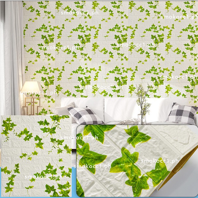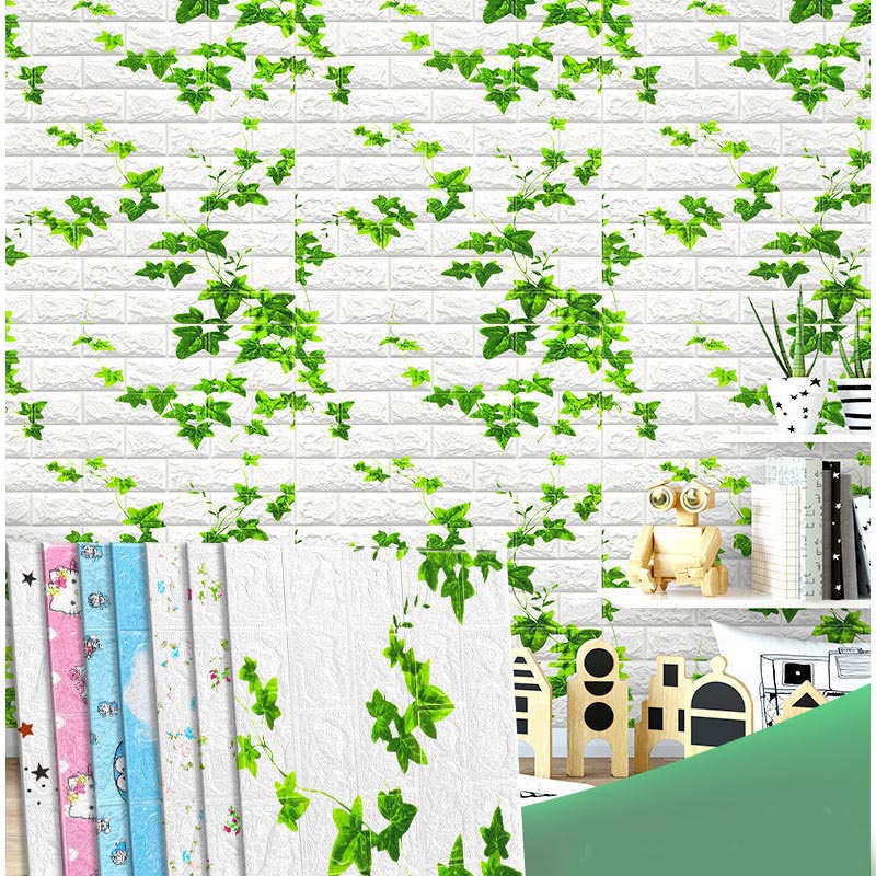 Folhas verdes papel de parede adesivo espuma 3D decoração de parede trepadeiras adesivos quarto à prova d'água decoração de casa