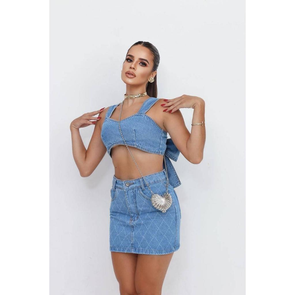 Saia mom jeans xadrez rasgada
