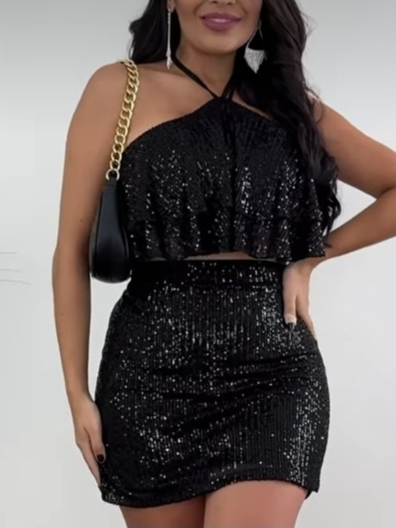 Saia Feminina Paetê com Forro Festa Brilho Balada Várias Cores