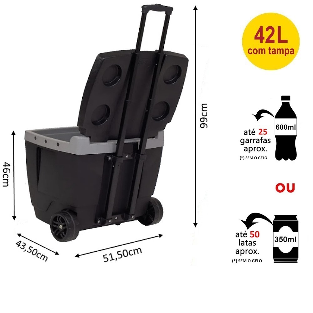 Caixa Termica Com Rodas Mor 42L Cooler Bebida Praia Com Rodinha Cores Oferta