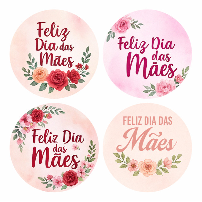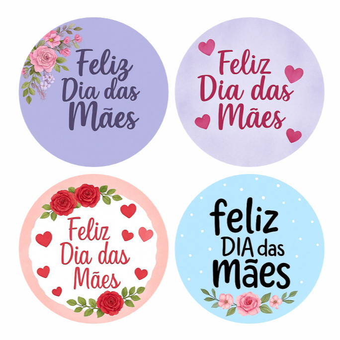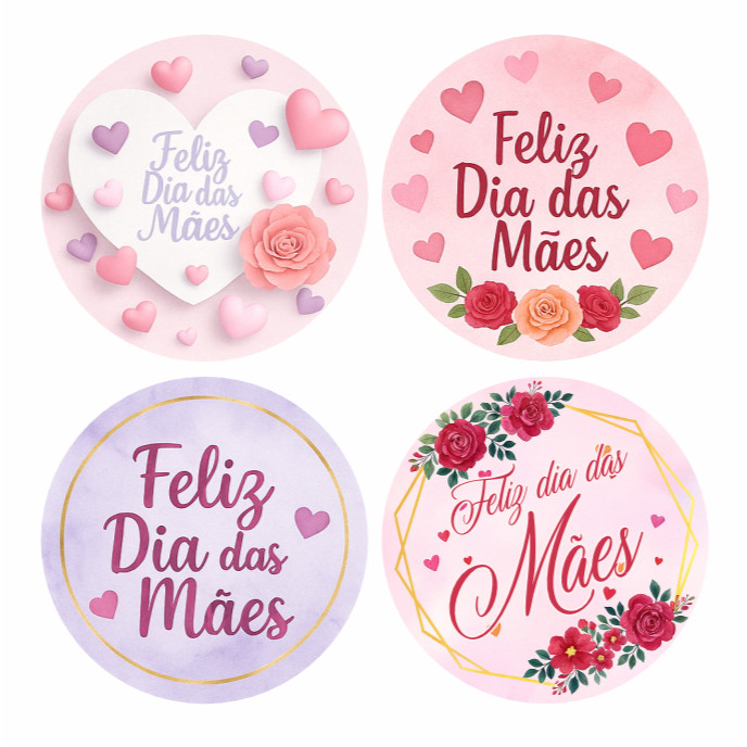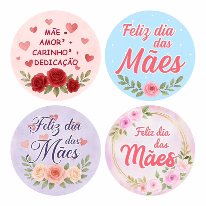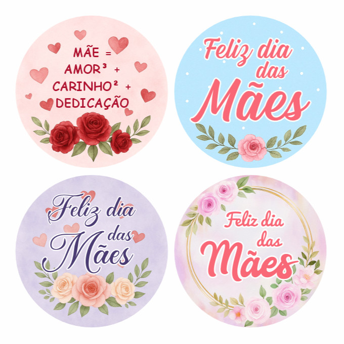 Kit 100 Etiquetas Adesivos Dia das Mães 4x4cm Selos Presentes Lembrancinhas Embalagens Loja