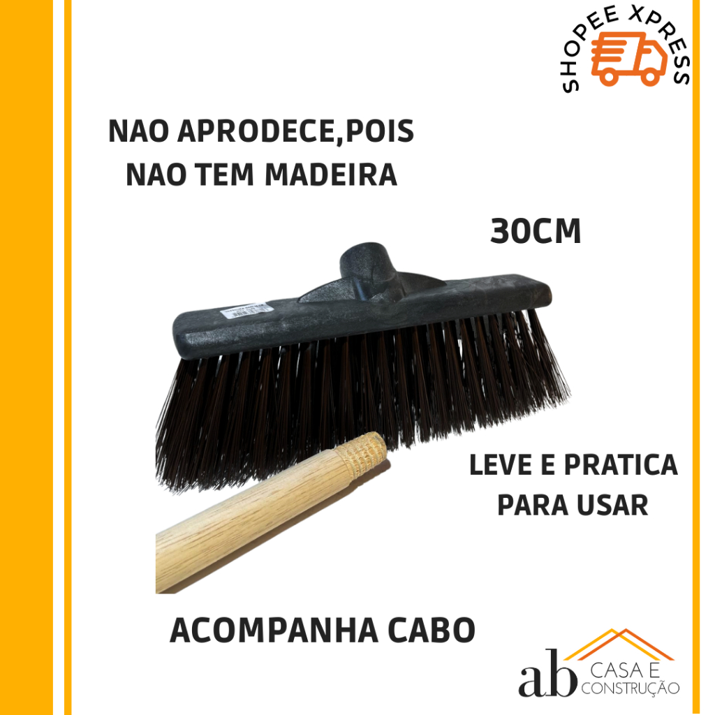 Vassoura Gari Esfregão Garagem Asfalto Calçada Piso Rustico Estacionamento - 30cm