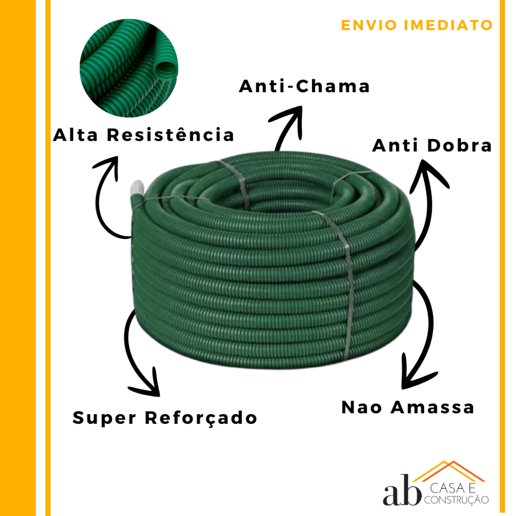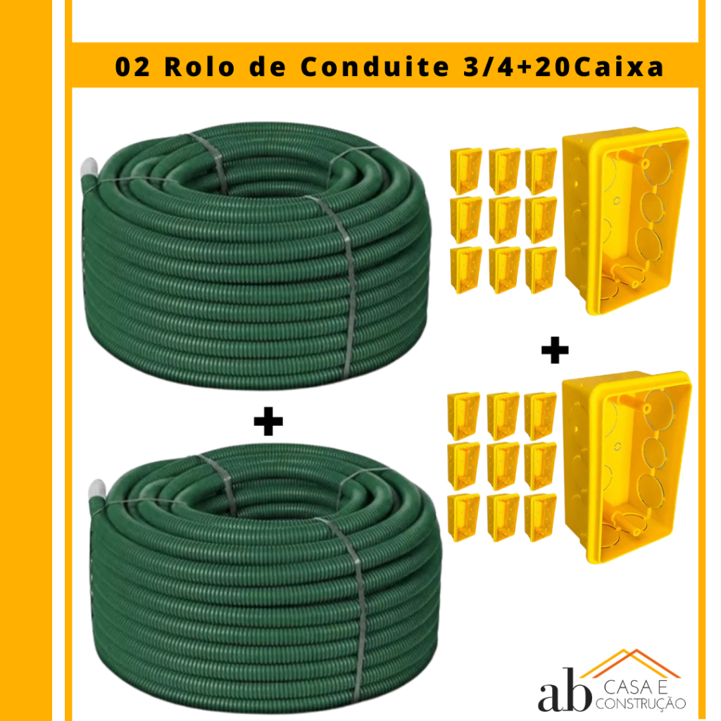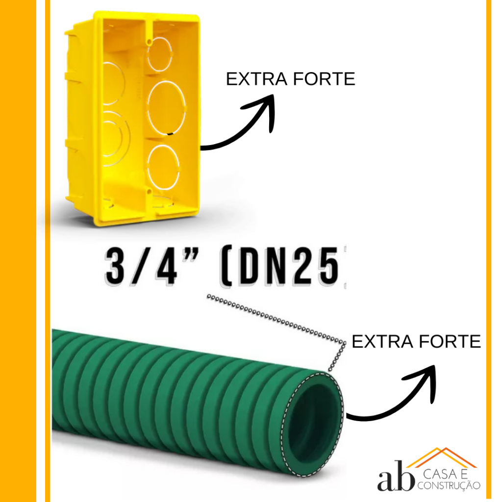 Conduite Corrugado Eletroduto Extra Forte 50 metros + 20 Caixinha Amarela de Luz