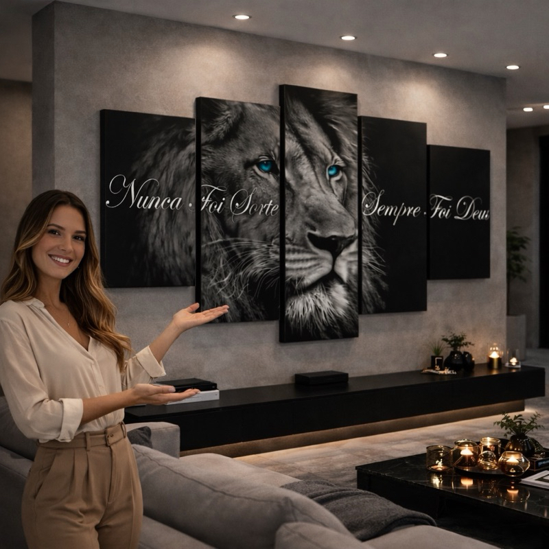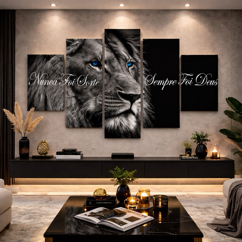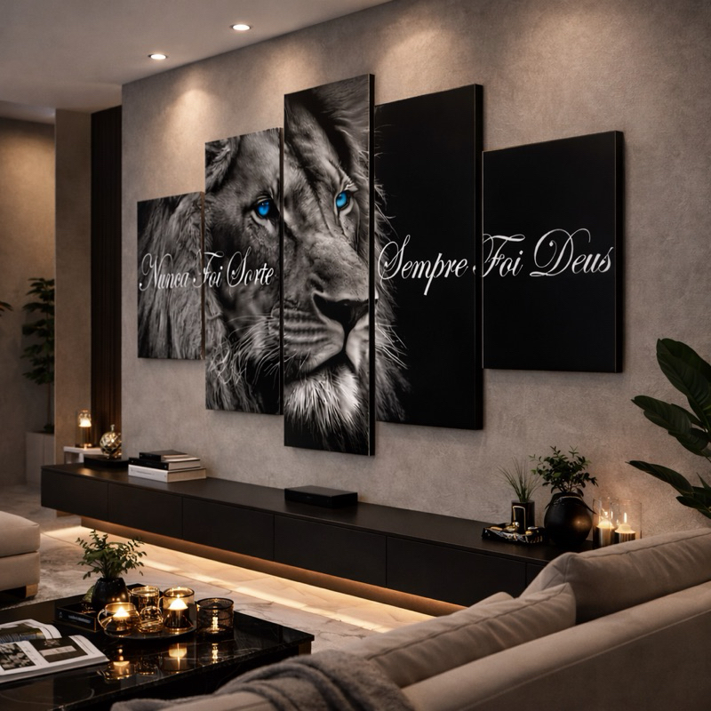Quadro Decorativo Mosaico Leão de Juda Olho Azul Nunca Foi Sorte Sempre Foi Deus Sala Quarto Hd