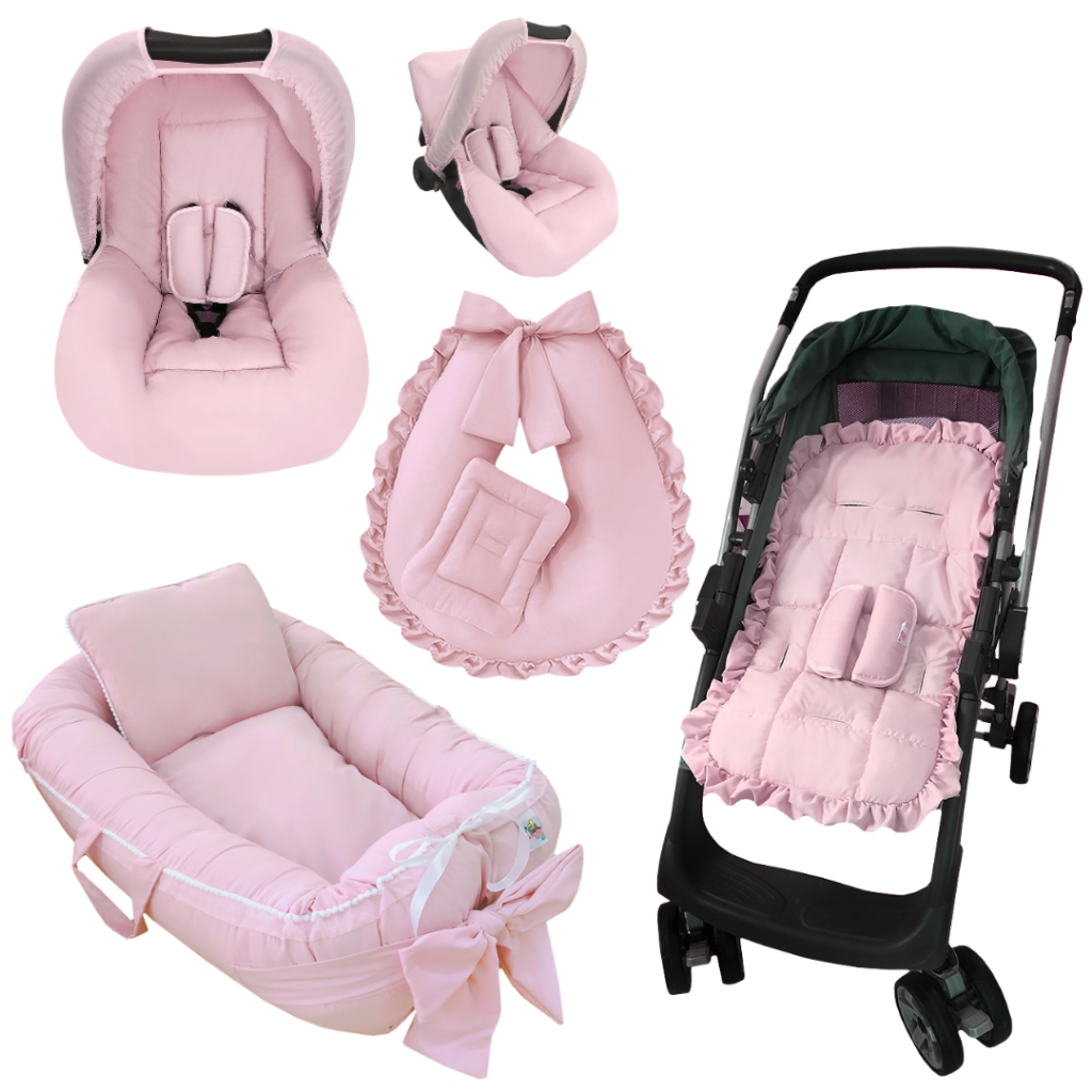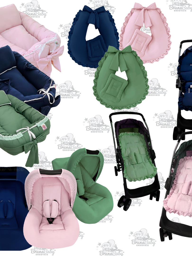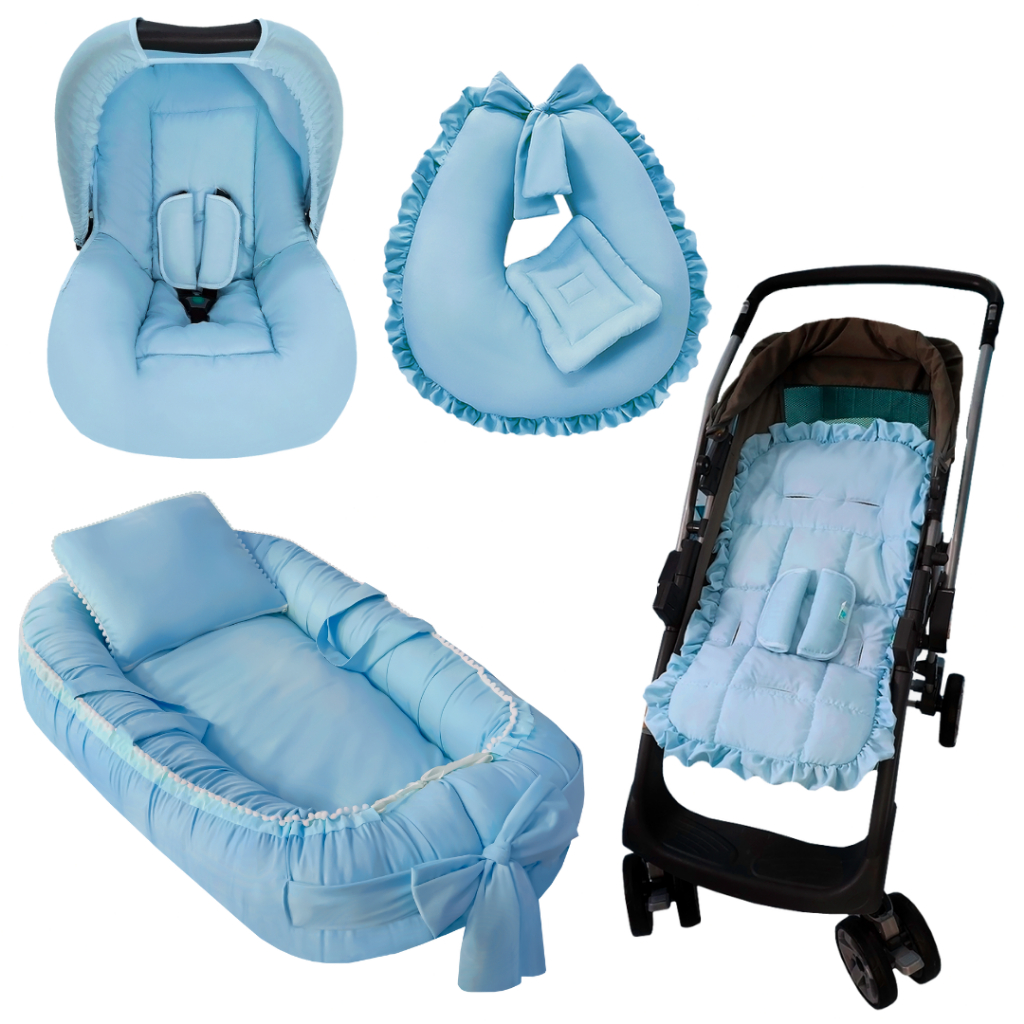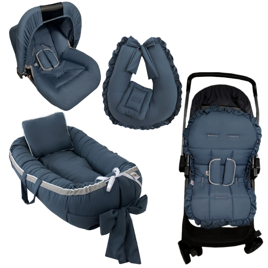 Kit Bebê - Ninho Redutor + Almofada Amamentar + Capa Bebe Conforto Capota Protetores + Capa Carrinho