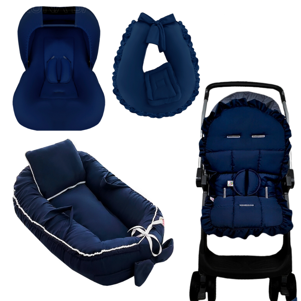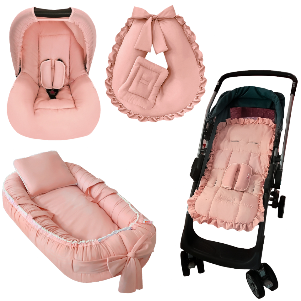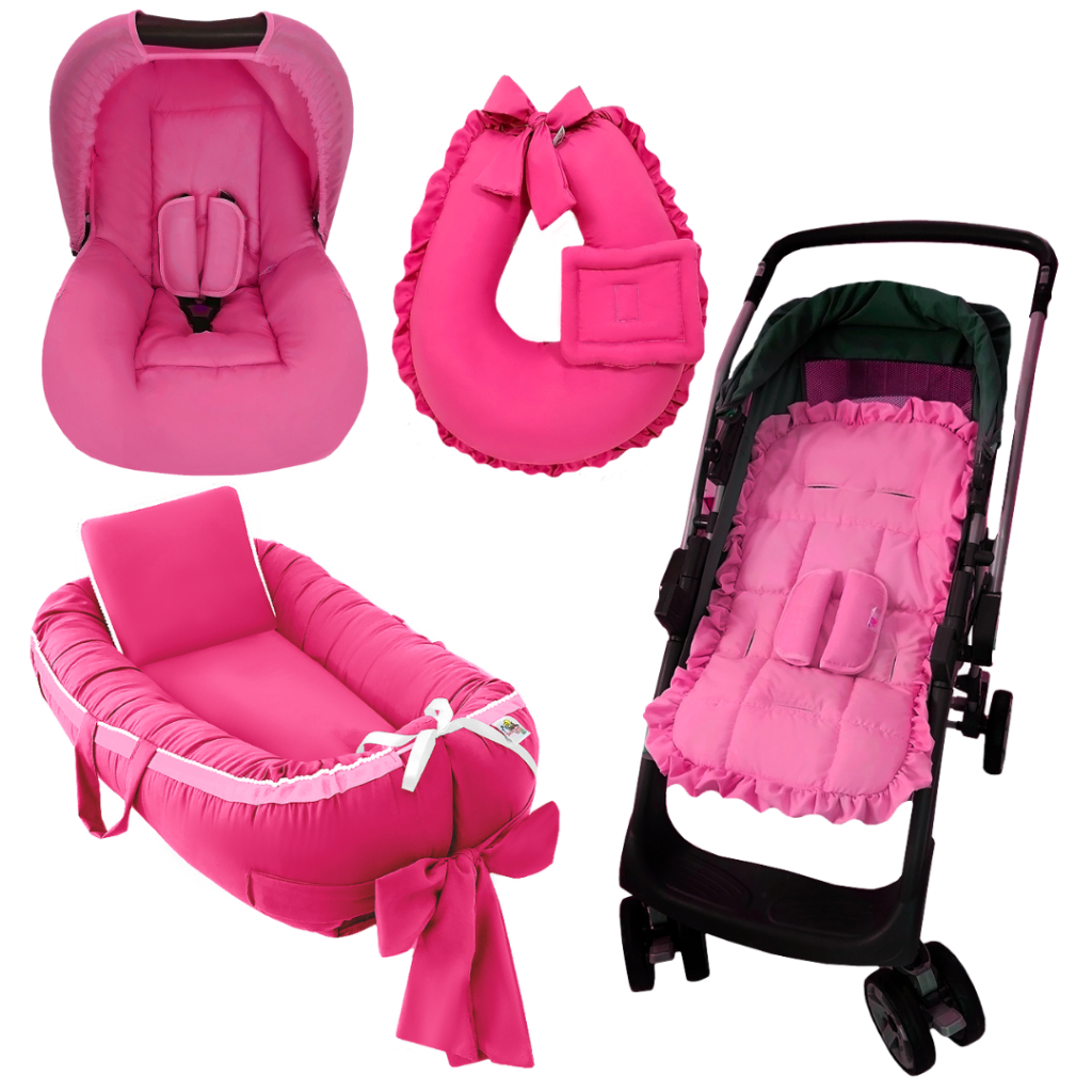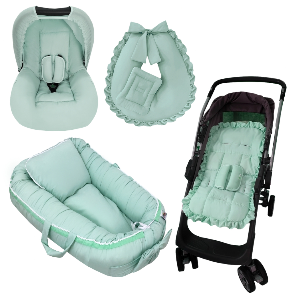 Kit Bebê - Ninho Redutor + Almofada Amamentar + Capa Bebe Conforto Capota Protetores + Capa Carrinho