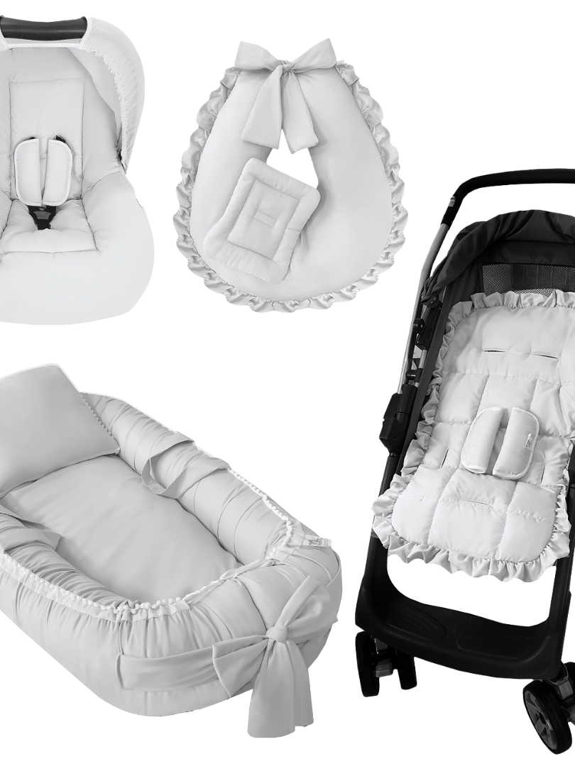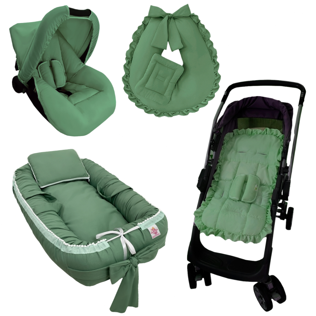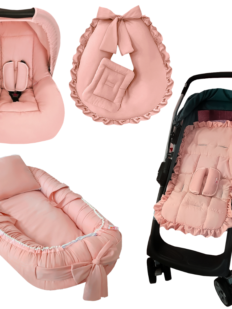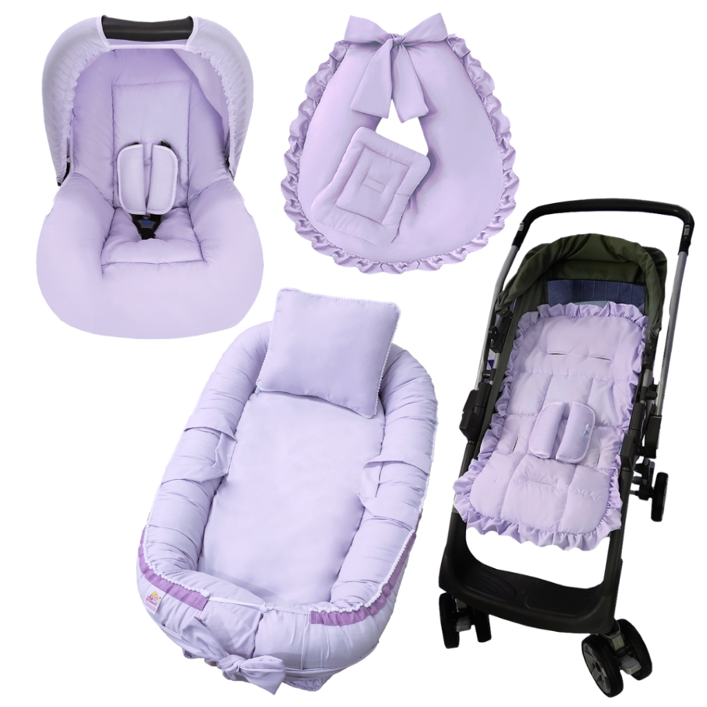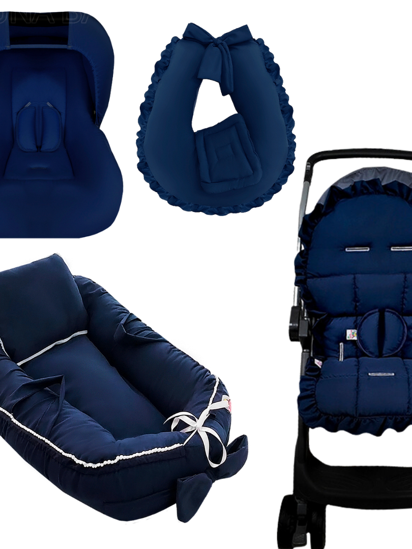 Kit Bebê - Ninho Redutor + Almofada Amamentar + Capa Bebe Conforto Capota Protetores + Capa Carrinho