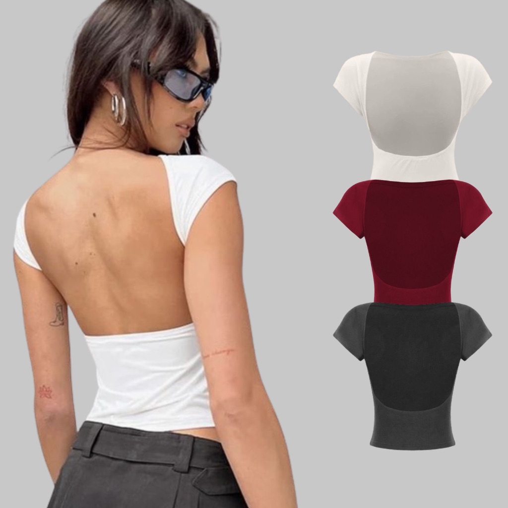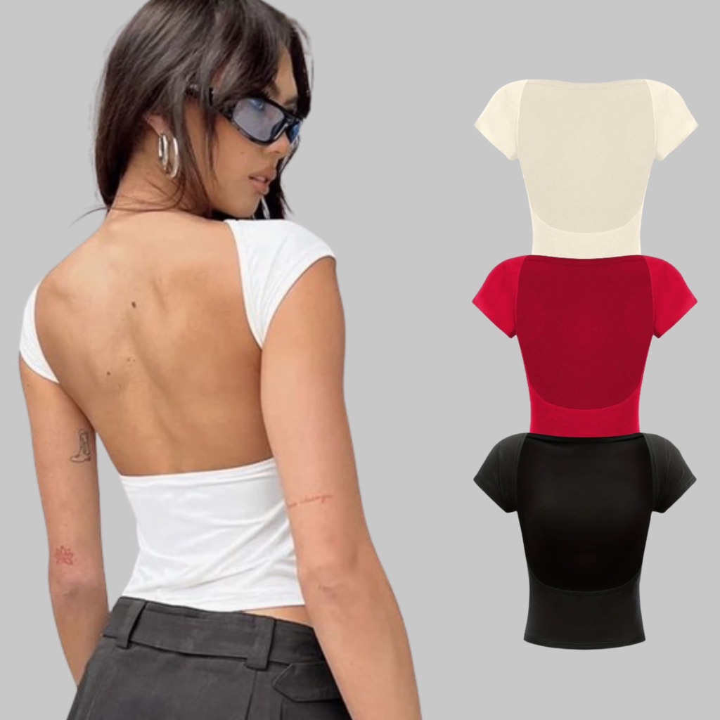 Kit 3 Cropped Costa Nua Baby Tee Look Tecido Poliamida Manga Curta