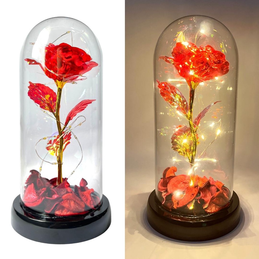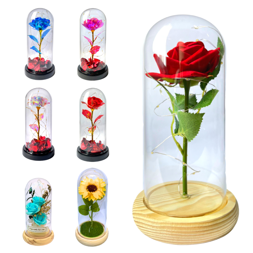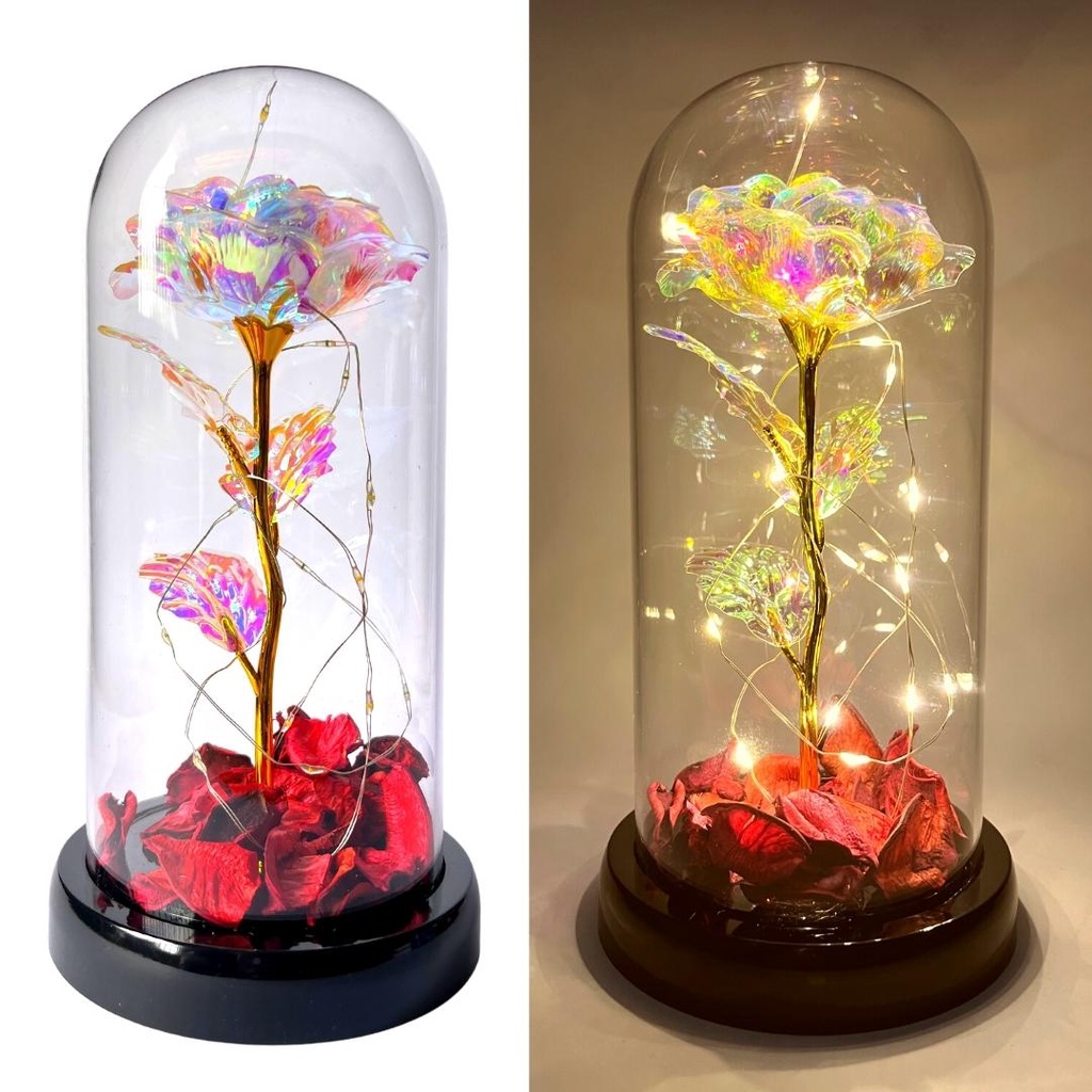 Luminária Cúpula A Bela E A Fera O Pequeno Príncipe Rosa Encantada Rosas Coloridas com LED