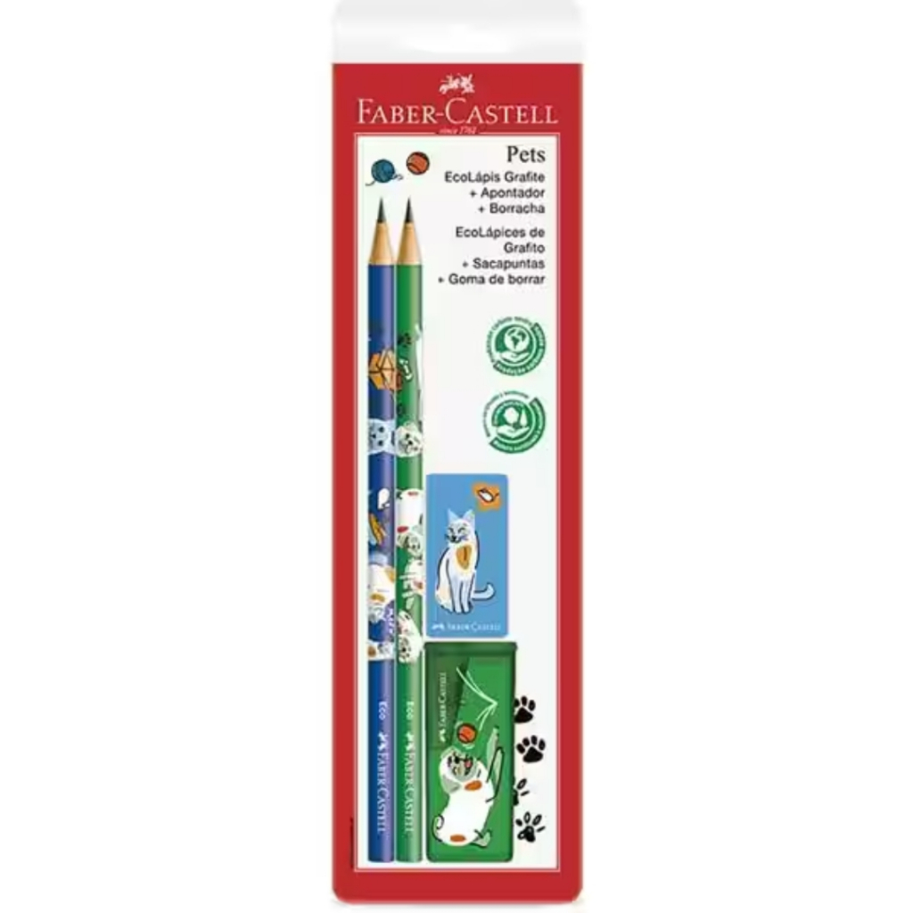 Kit Escolar Faber-Castell Lápis + Apontador + Borracha