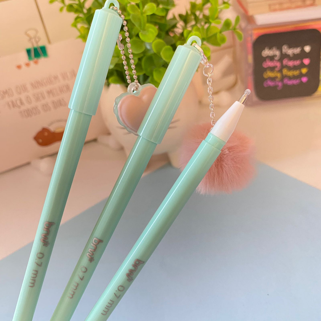 Caneta Gel Apagável com Pingente Pompom e Coração S2 - BRW