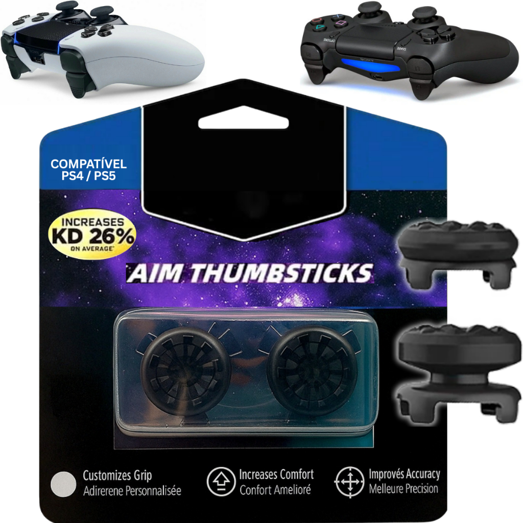 Grip Gamer Botão Preto Antiderrapante Analógico Para Video Game Ps4 Ps5