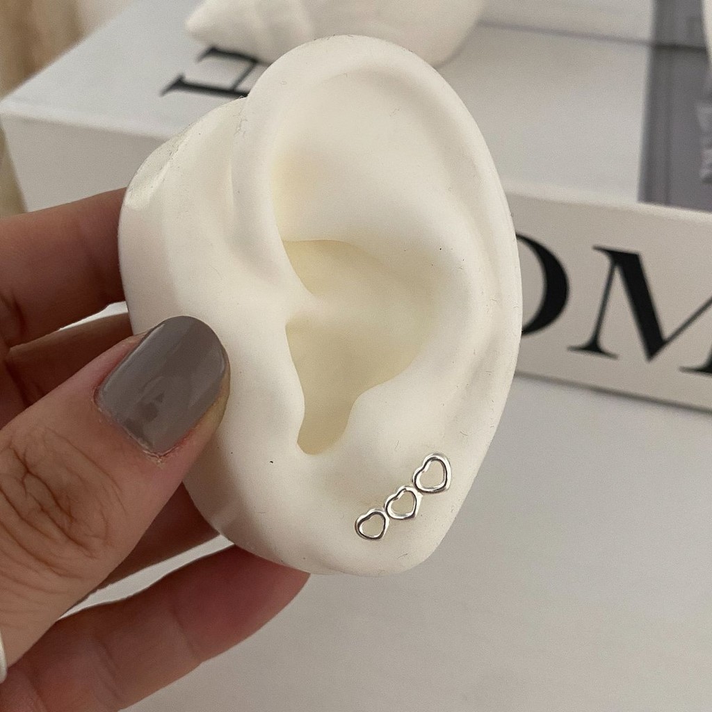 Brinco Ear Cuff 3 Corações em Prata 925