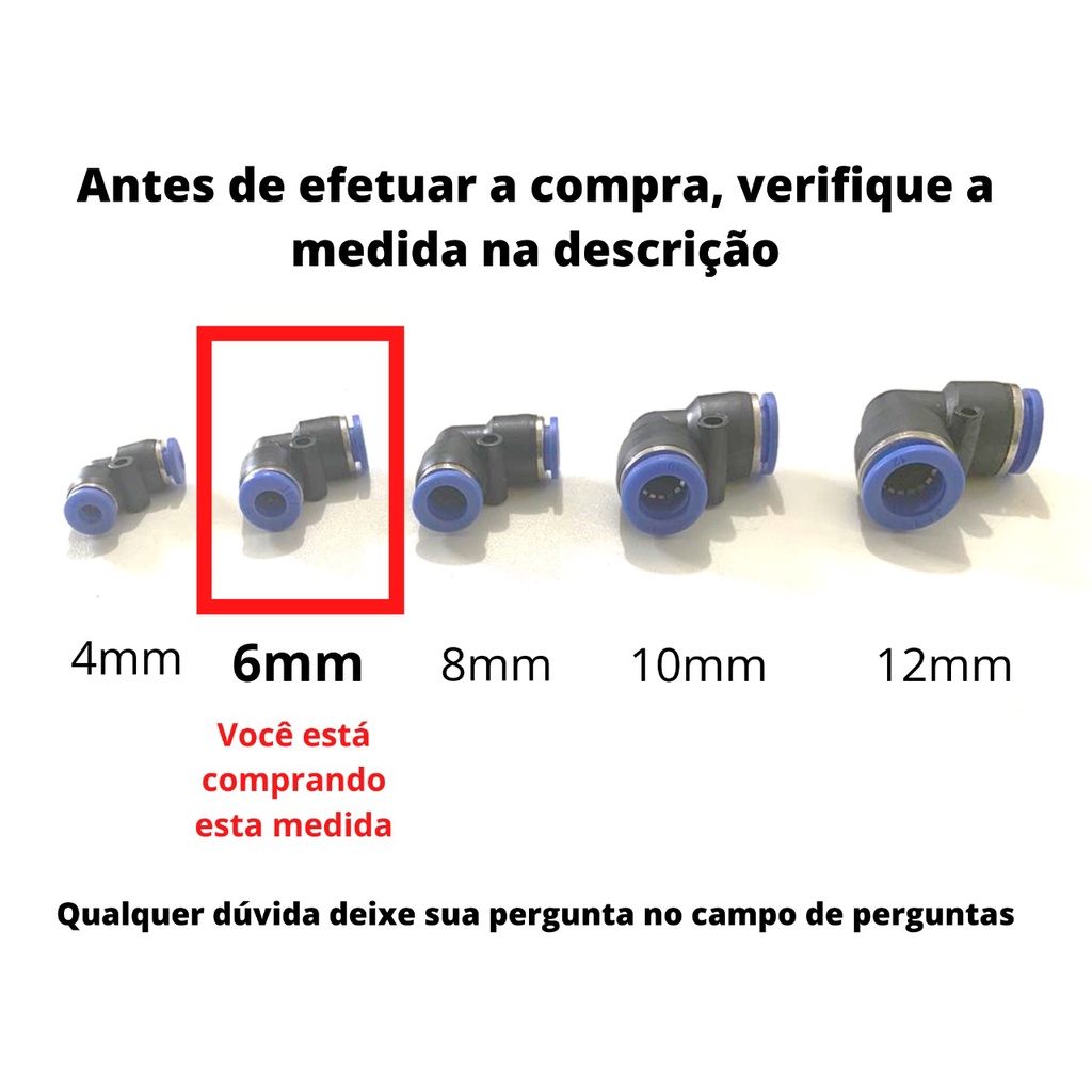 Kit 10 União em L Cotovelo Joelho Pneumático 6MM