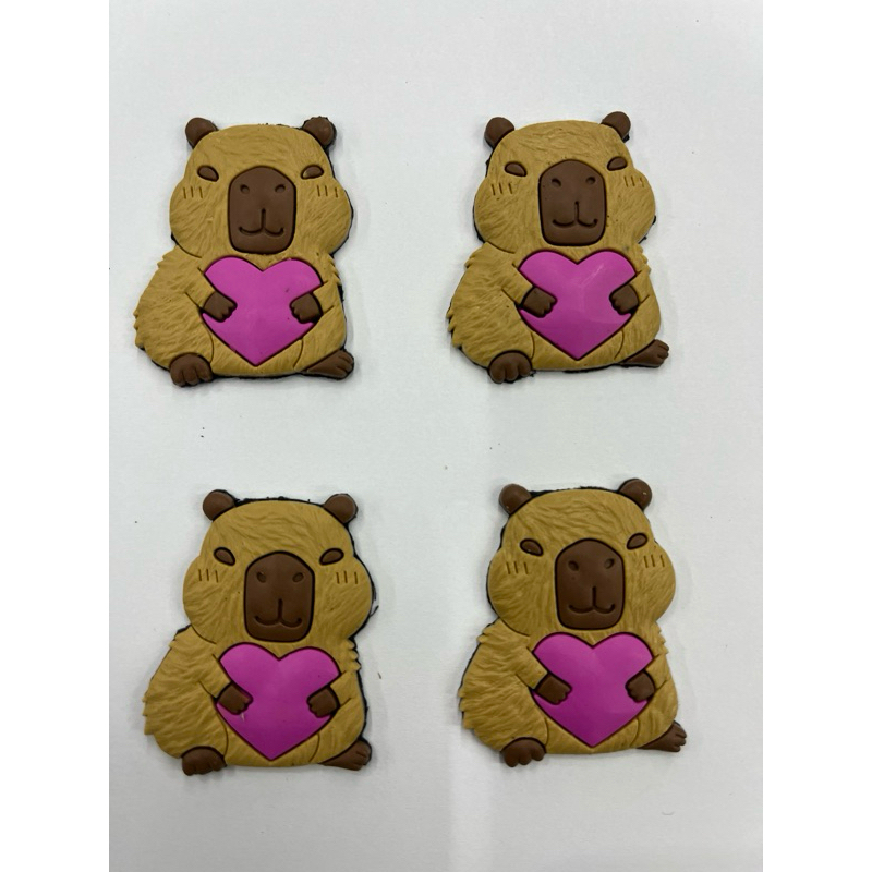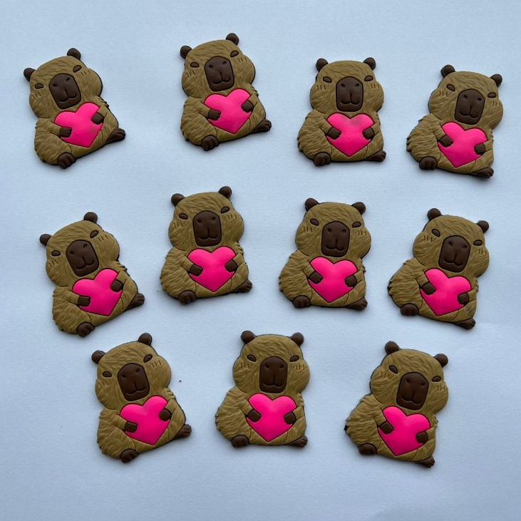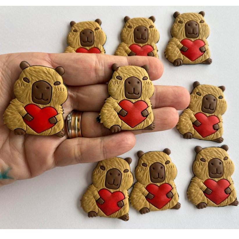 KIT APLIQUE EMBORRACHADO CAPIVARA CORAÇÃO PINK COM EXPESSURAS DO PELO, PACTE COM 10 PEÇAS