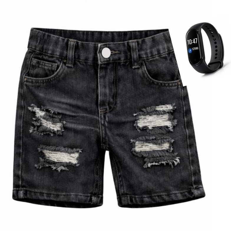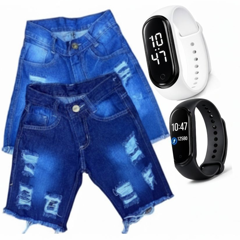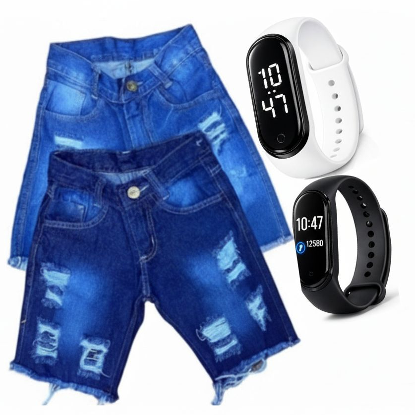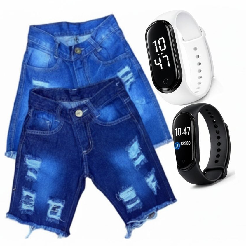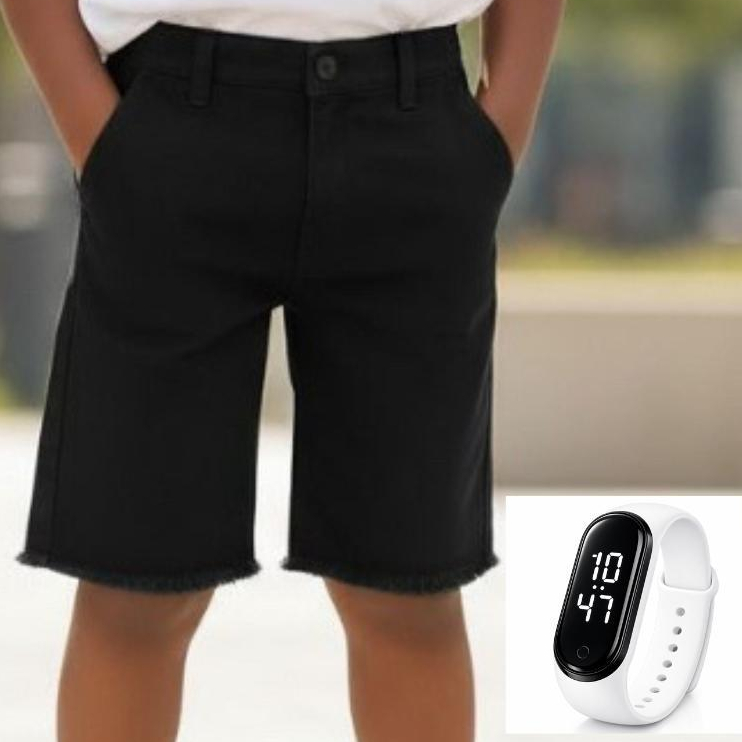 Kit Infantil Menino Bermuda Jeans + Relógio Esportivo