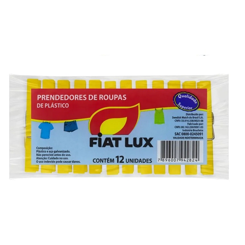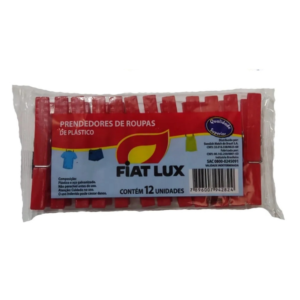 Kit com 4 Pacotes de Prendedores De Roupas Fiat Lux 12 Unidades (total 48 Unidades)