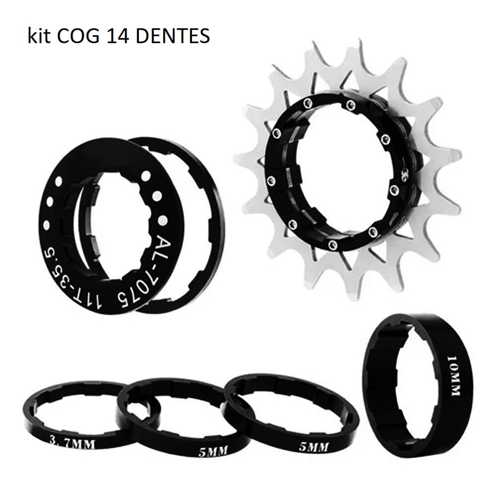 Kit Cog Single Speed Gta Preto de 14 ou 16d Grau Freeride Compativel Gios hupi viking Absolut