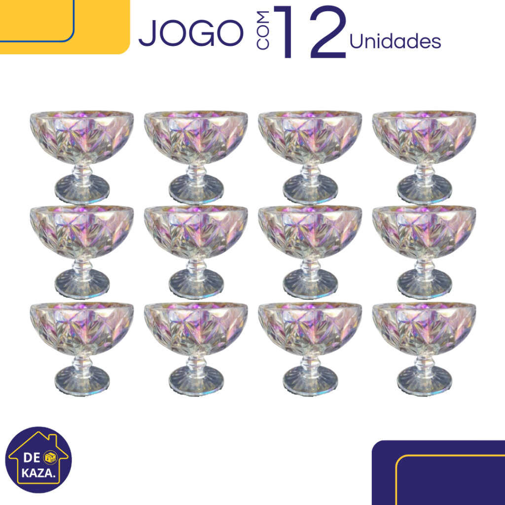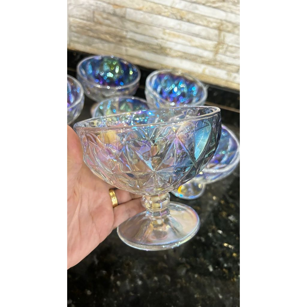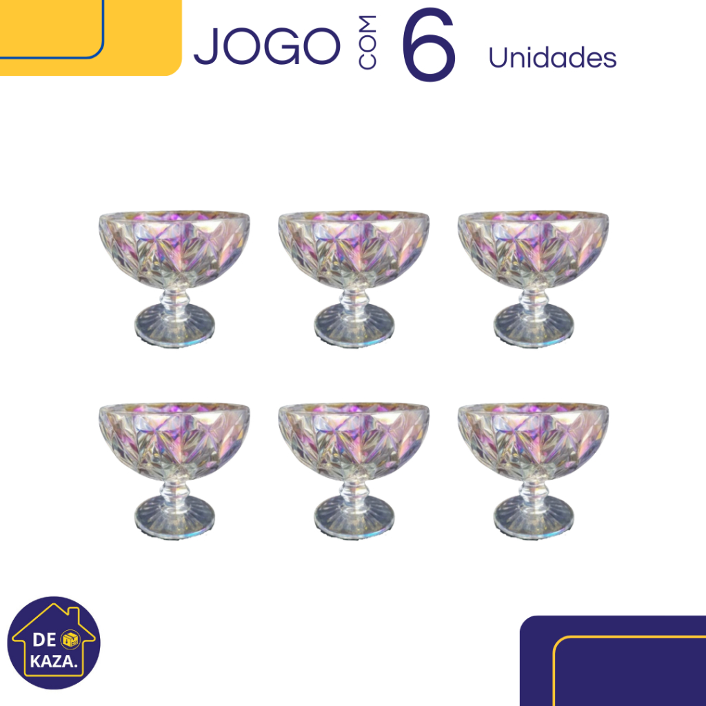 Jogo 6 Taças de sobremesa Diamond Rainbow Futacor Luxo Vidro