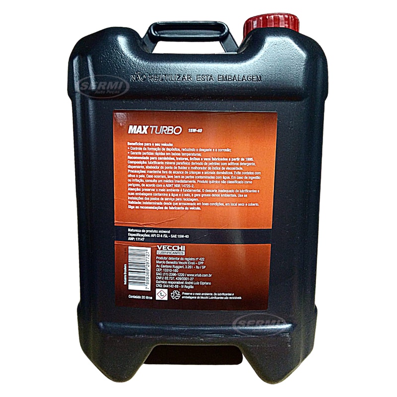 Óleo Motor Diesel 15W40 VR Lub Max Turbo Balde 20L