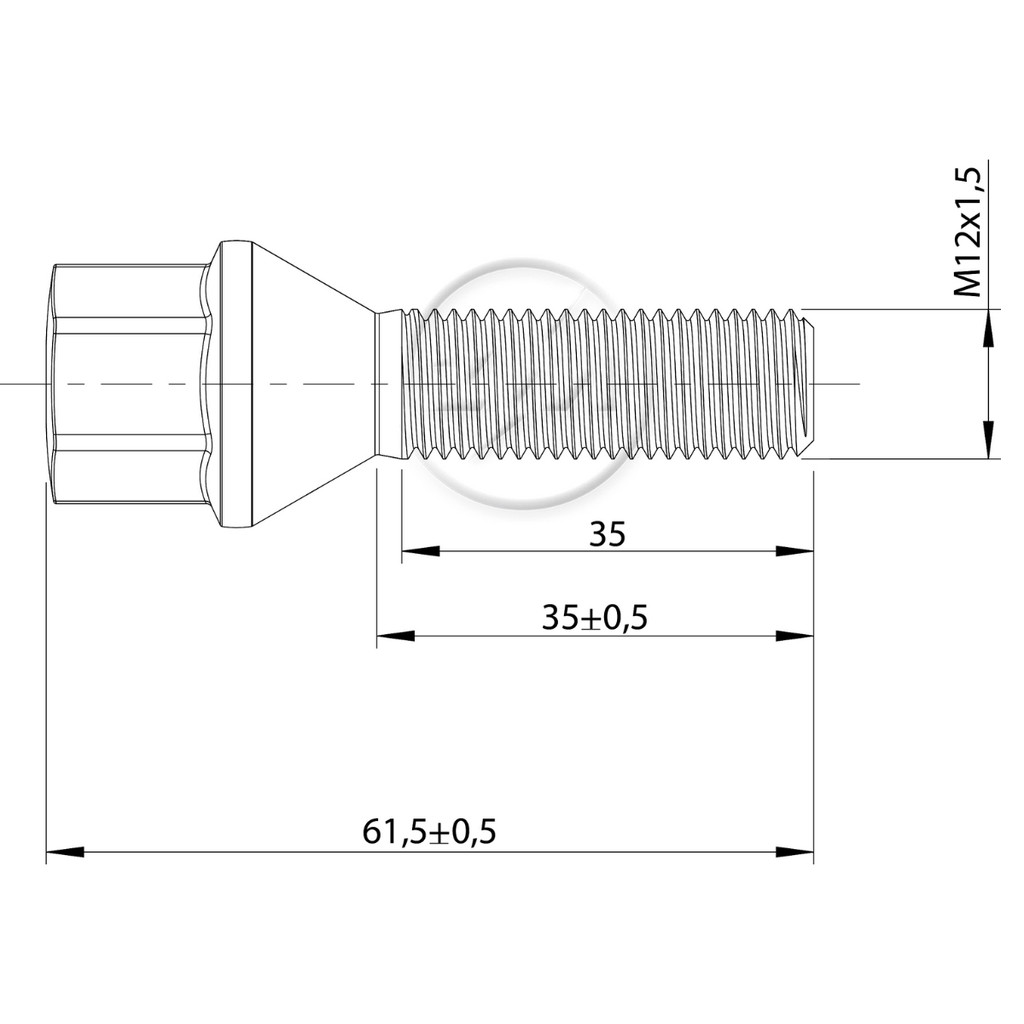 Parafuso Roda Liga Leve Gol Parati Saveiro Santana G1 G2 G3 G4 G5 rosca M12x35mm Chave 17 Cromado Marca ZM - Alta Qualidade