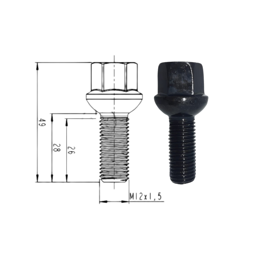 Jogo 4 Parafuso Roda Preto Volkswagen Gol Voyage Parati Saveiro Passat Santana Rosca 12mm x 28mm
