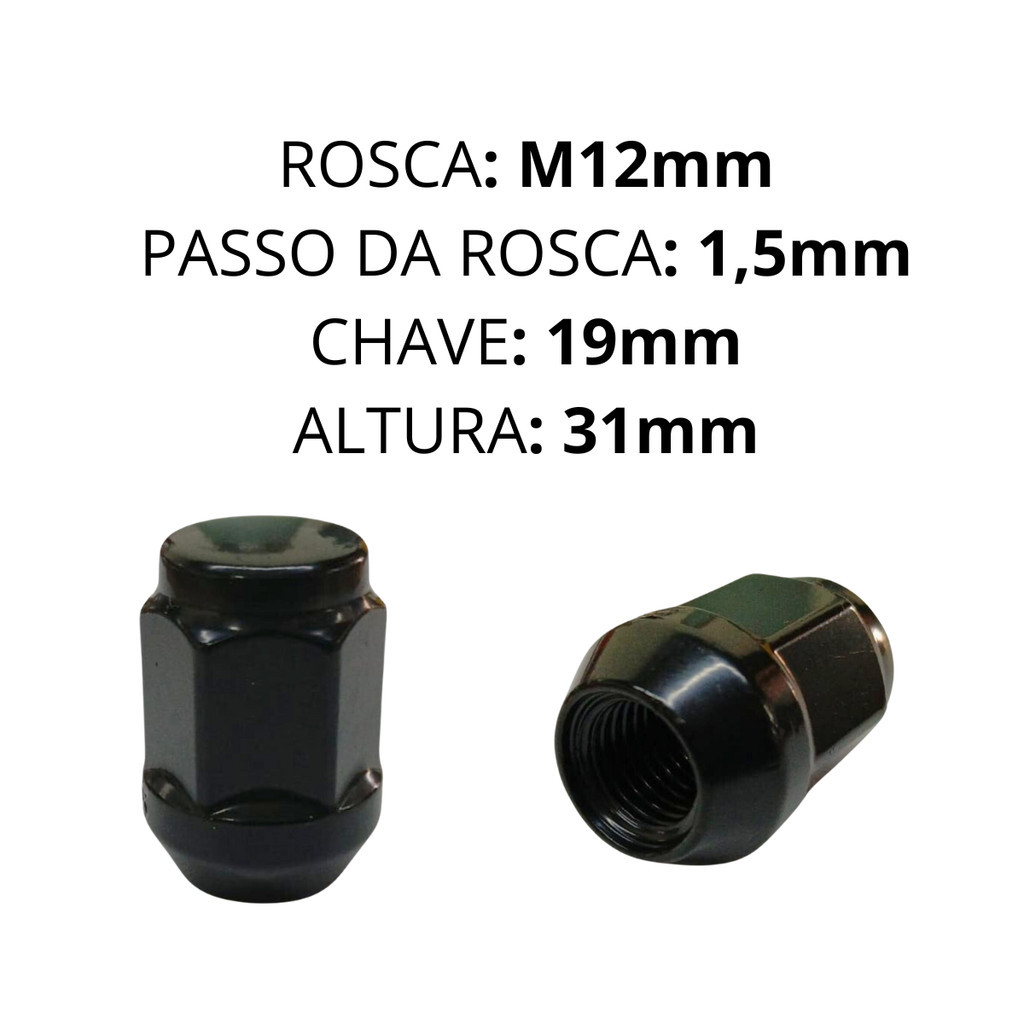Jogo 20 Porca Roda Preta Gm Opala D20 S10 Silverado Blazer Ford Fiesta Ecosport Courier Focus