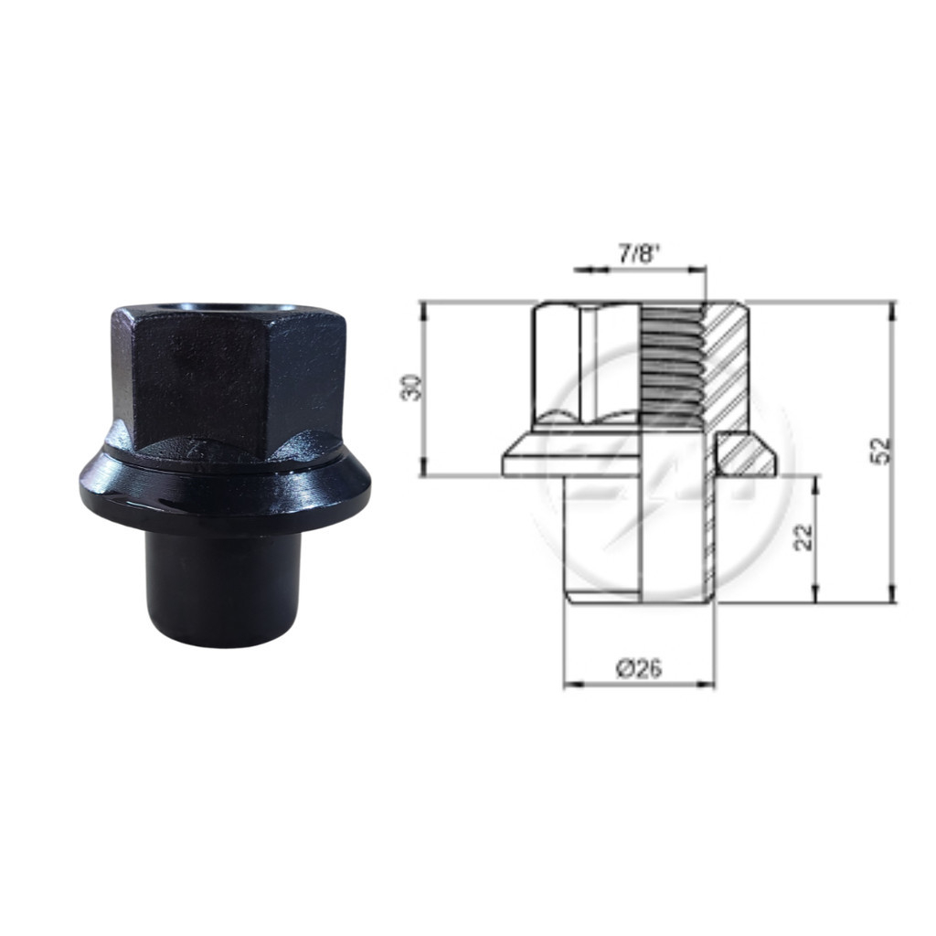Kit 4 Porca Roda Traseira Scania Carreta Guerra 7/8 CH33 Altura 22/52mm Centralizadora ZM 2978051
