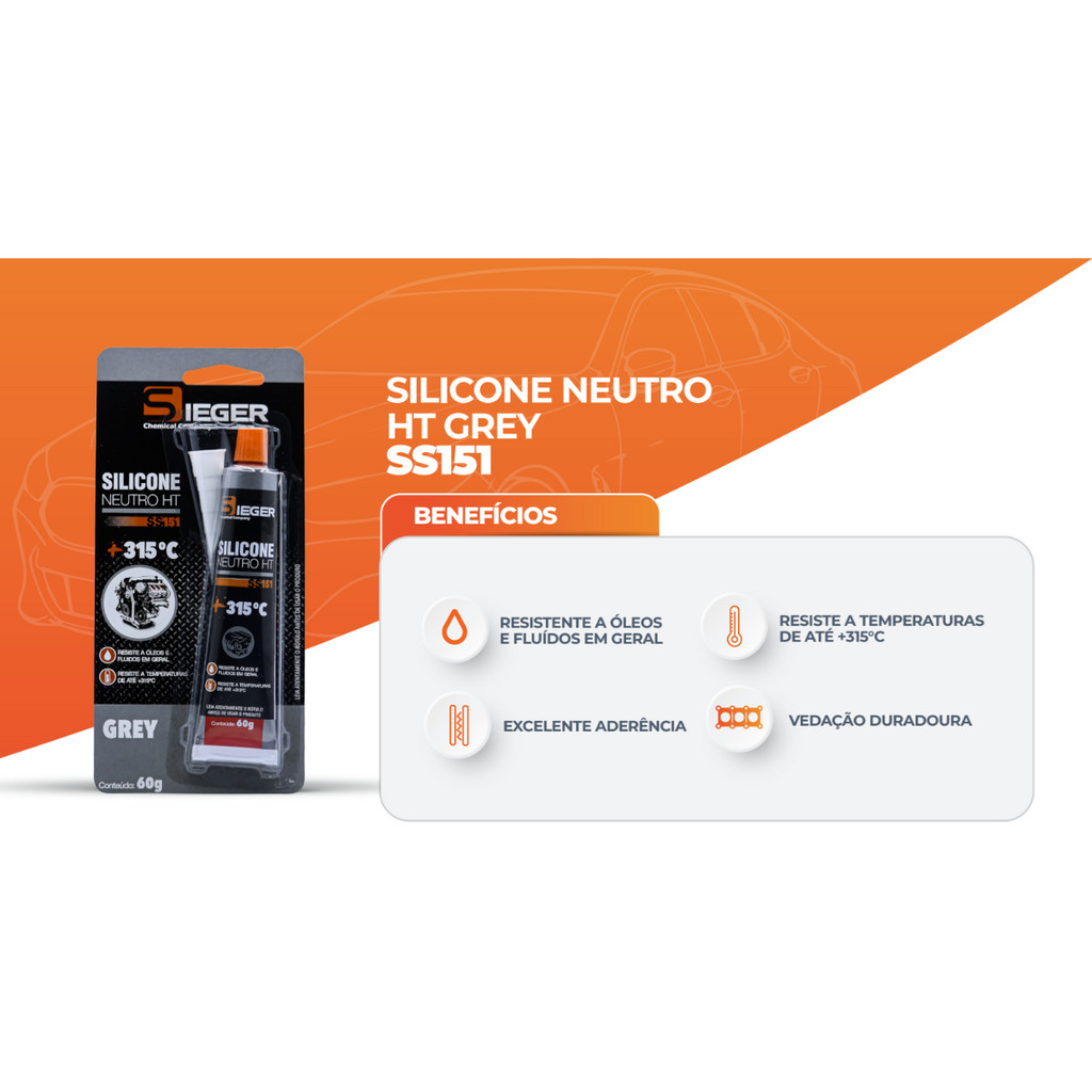 Cola Silicone Alta Temperatura Até 315°C Neutro HT Grey SS151 Sieger 60g para Motor Flange Coletor Carter Cambio vedação