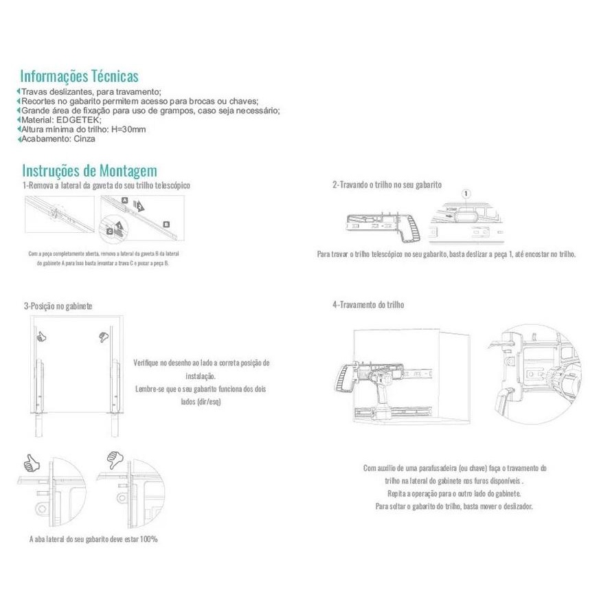 Gabarito para Instalação de Corrediça Telescópica em Móveis ABS