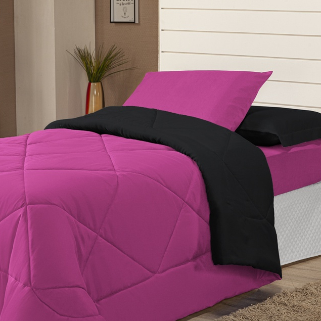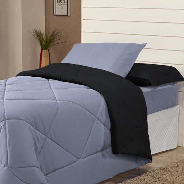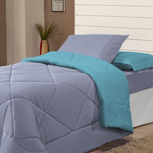Edredom Dupla Face Estampa Liso Uso Diário Toque Macio