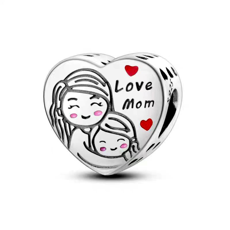 Pulseira Coração Corrente Berloque Prata 925 Encantos Rosa MOM Charme Inicial Pingente De Amor Pulseiras Jóias DIY