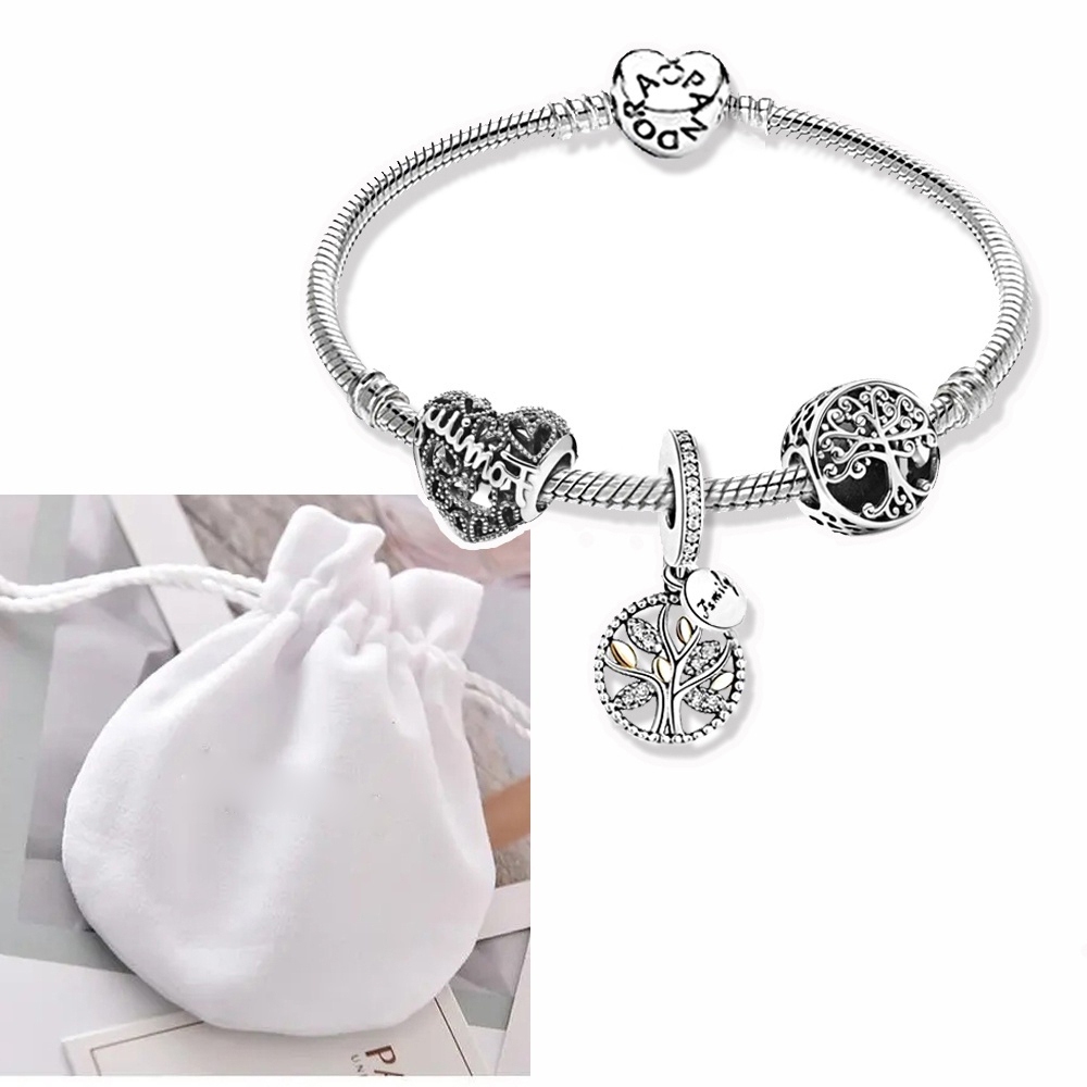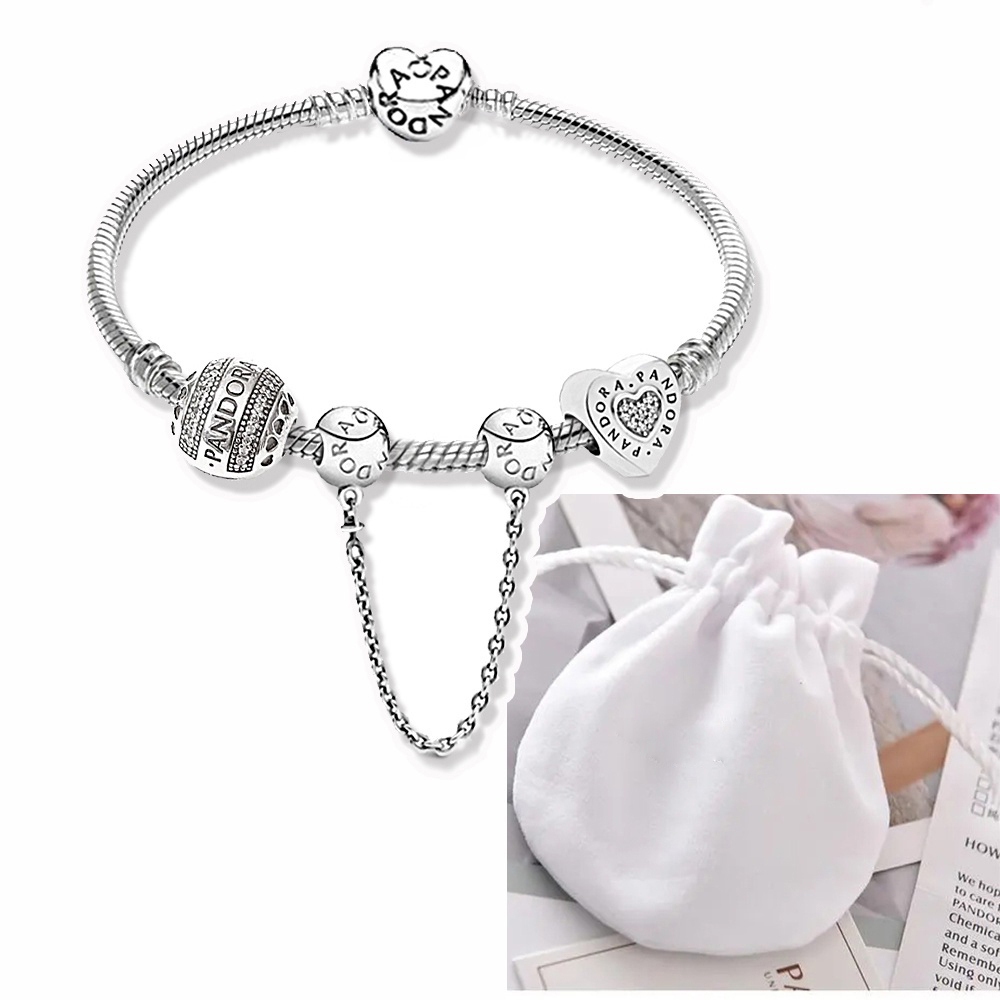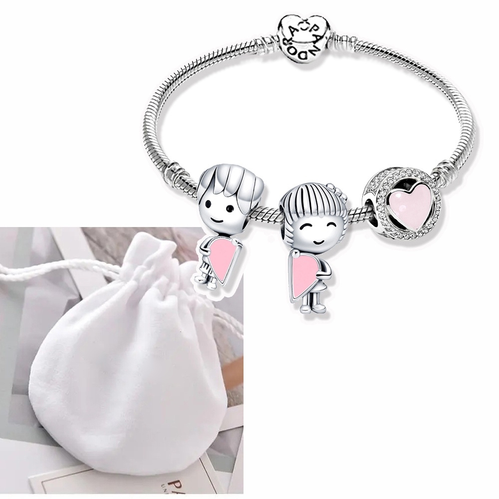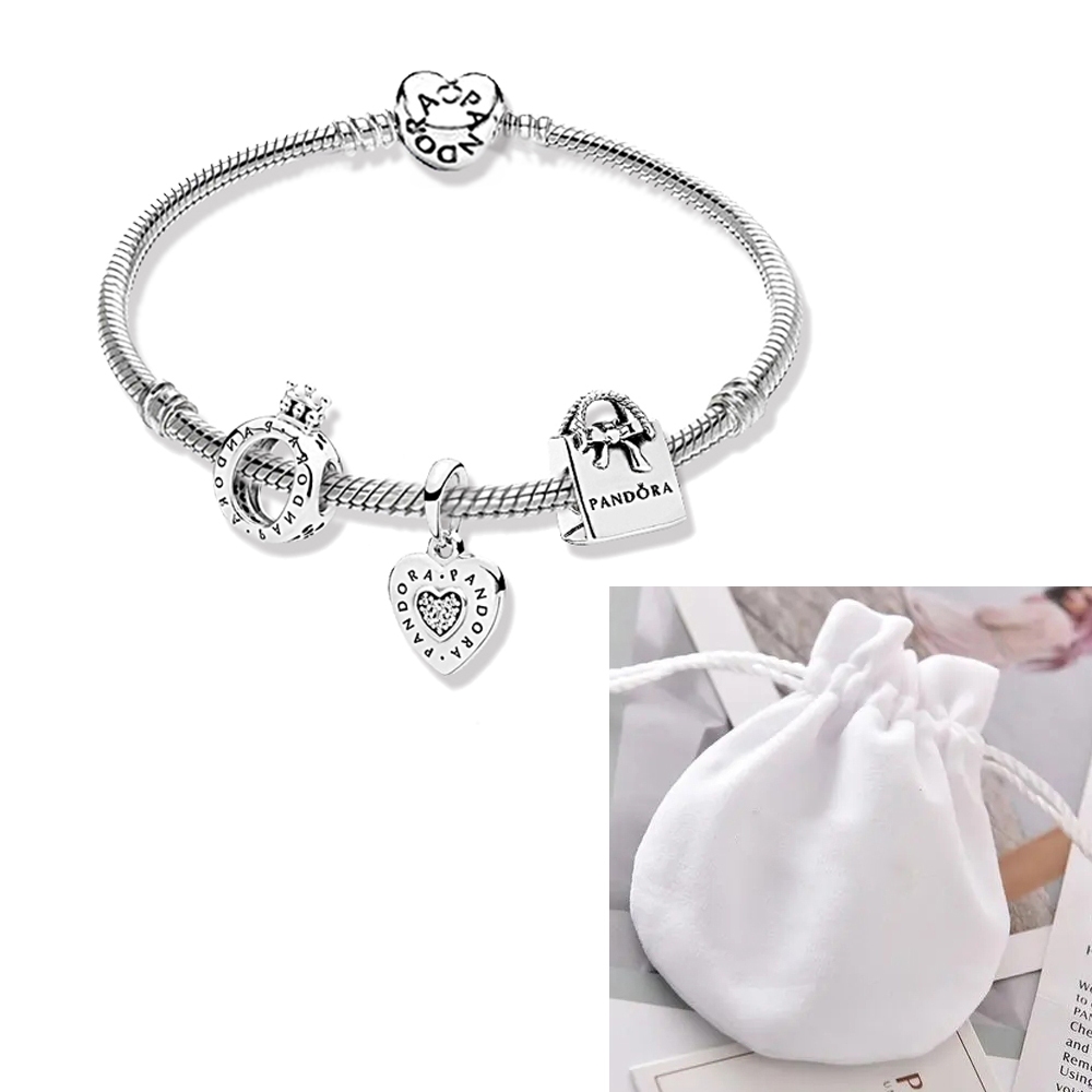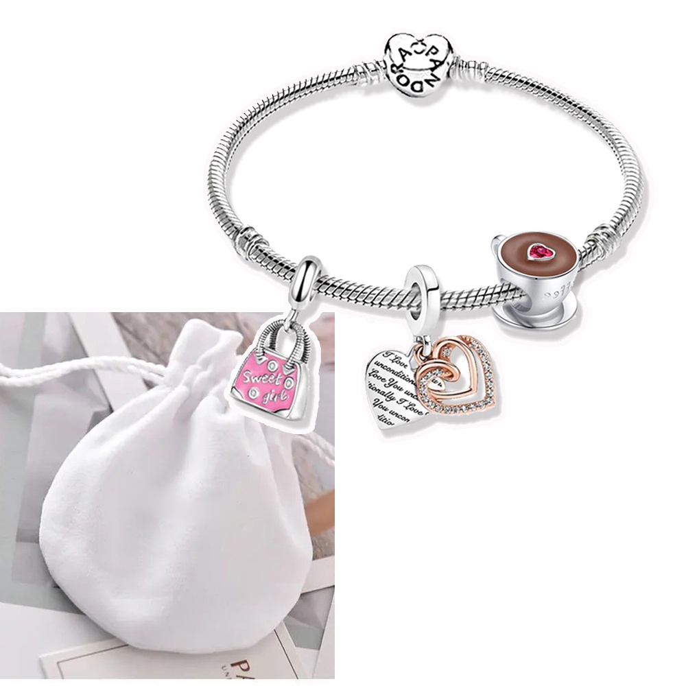 Pulseira Coração De Prata 925 Berloques kit Com 3 Pingentes Bracelete Letras Pretas Pulseiras Incluído Bolsa de veludo