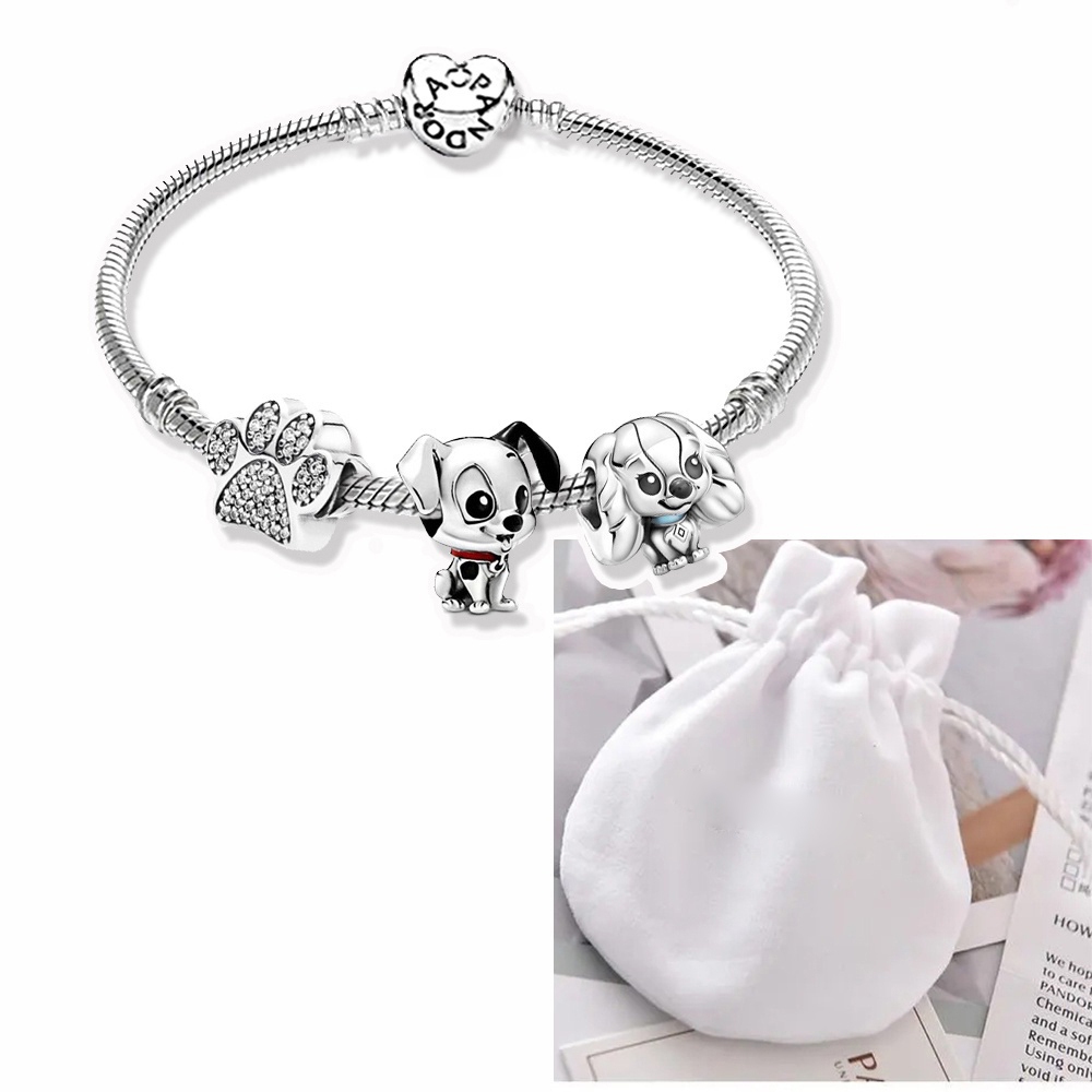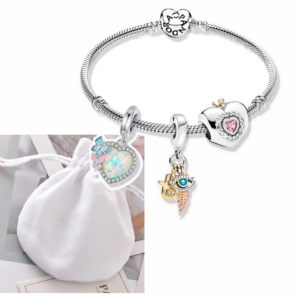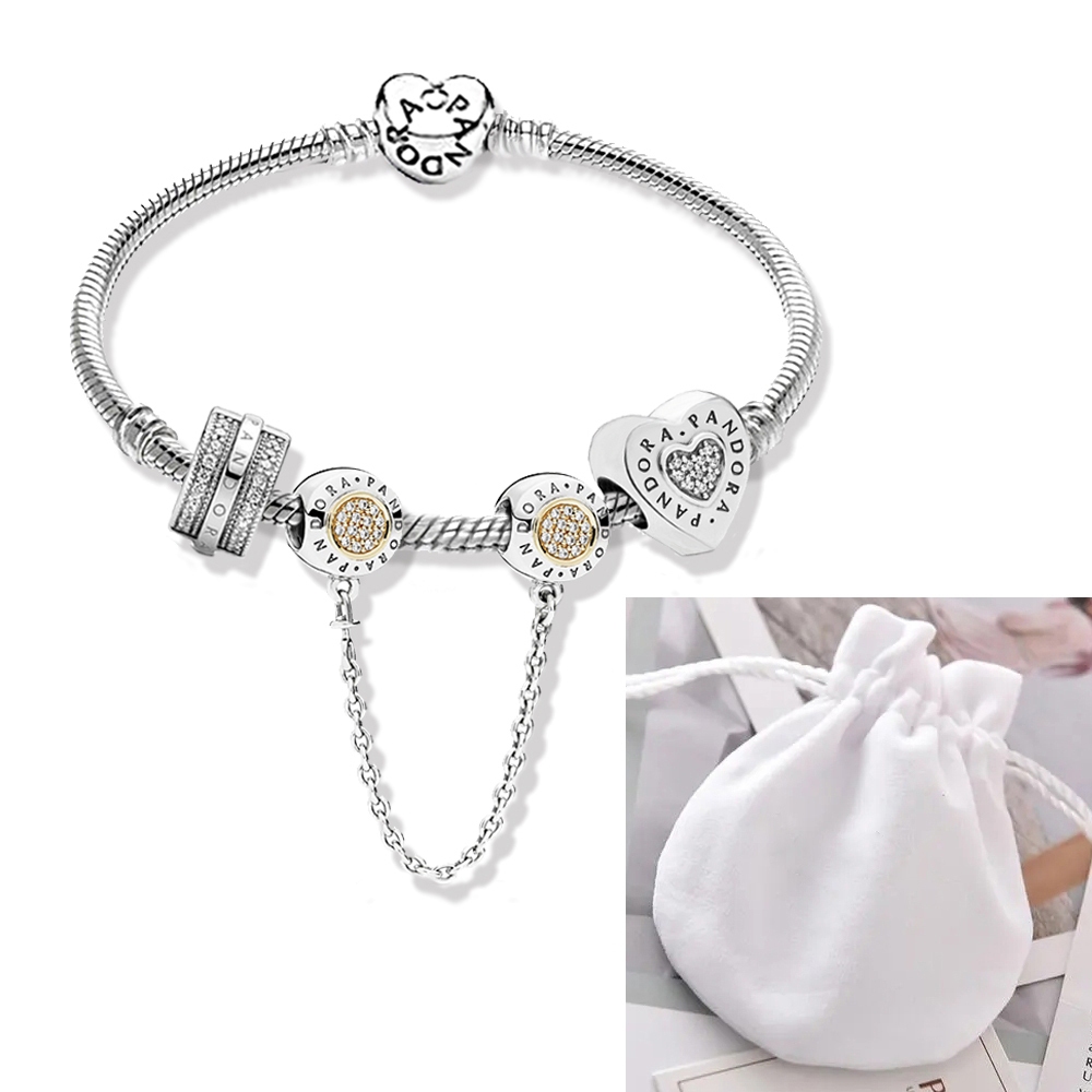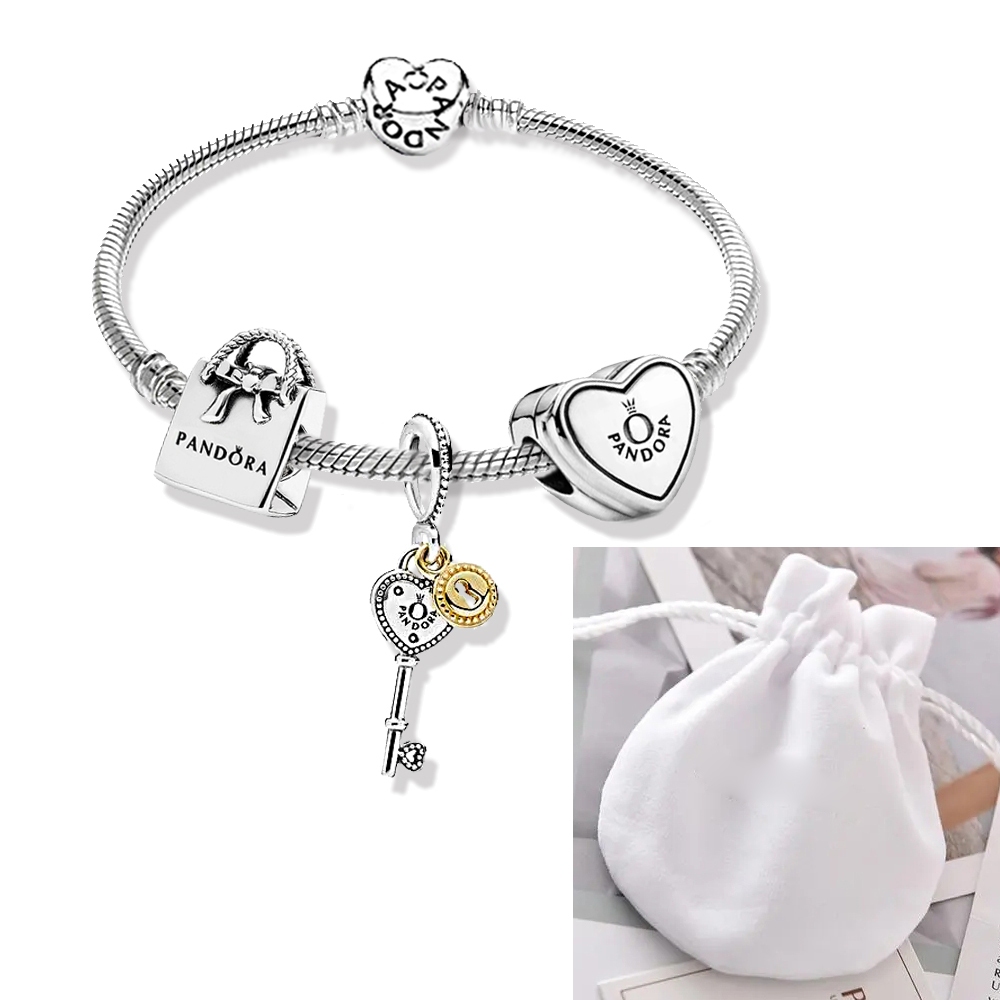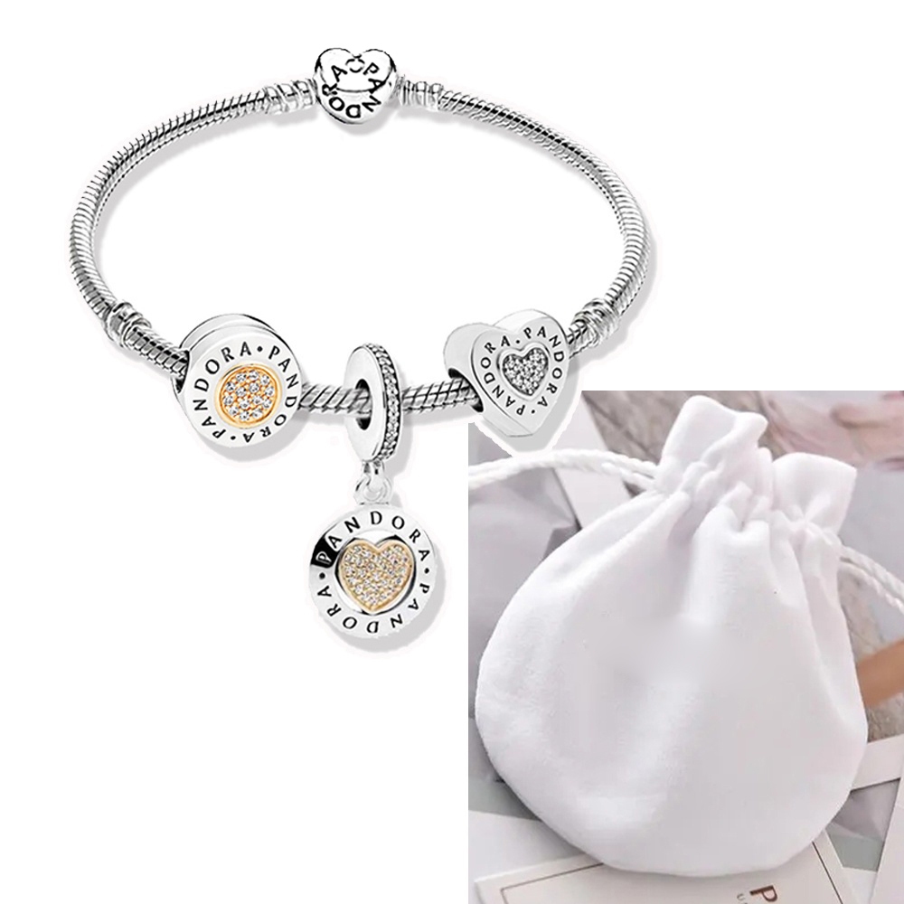 Pulseira Coração De Prata 925 Berloques kit Com 3 Pingentes Bracelete Letras Pretas Pulseiras Incluído Bolsa de veludo