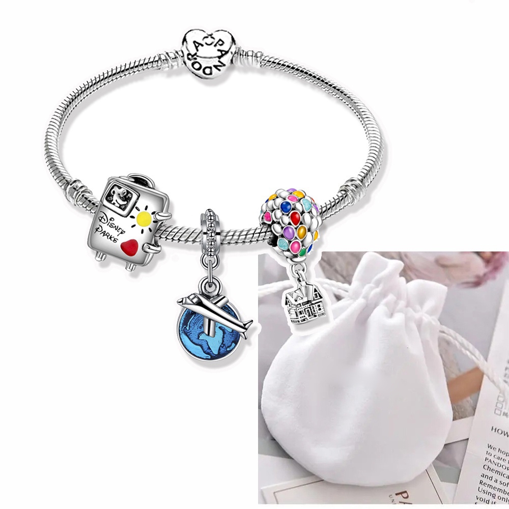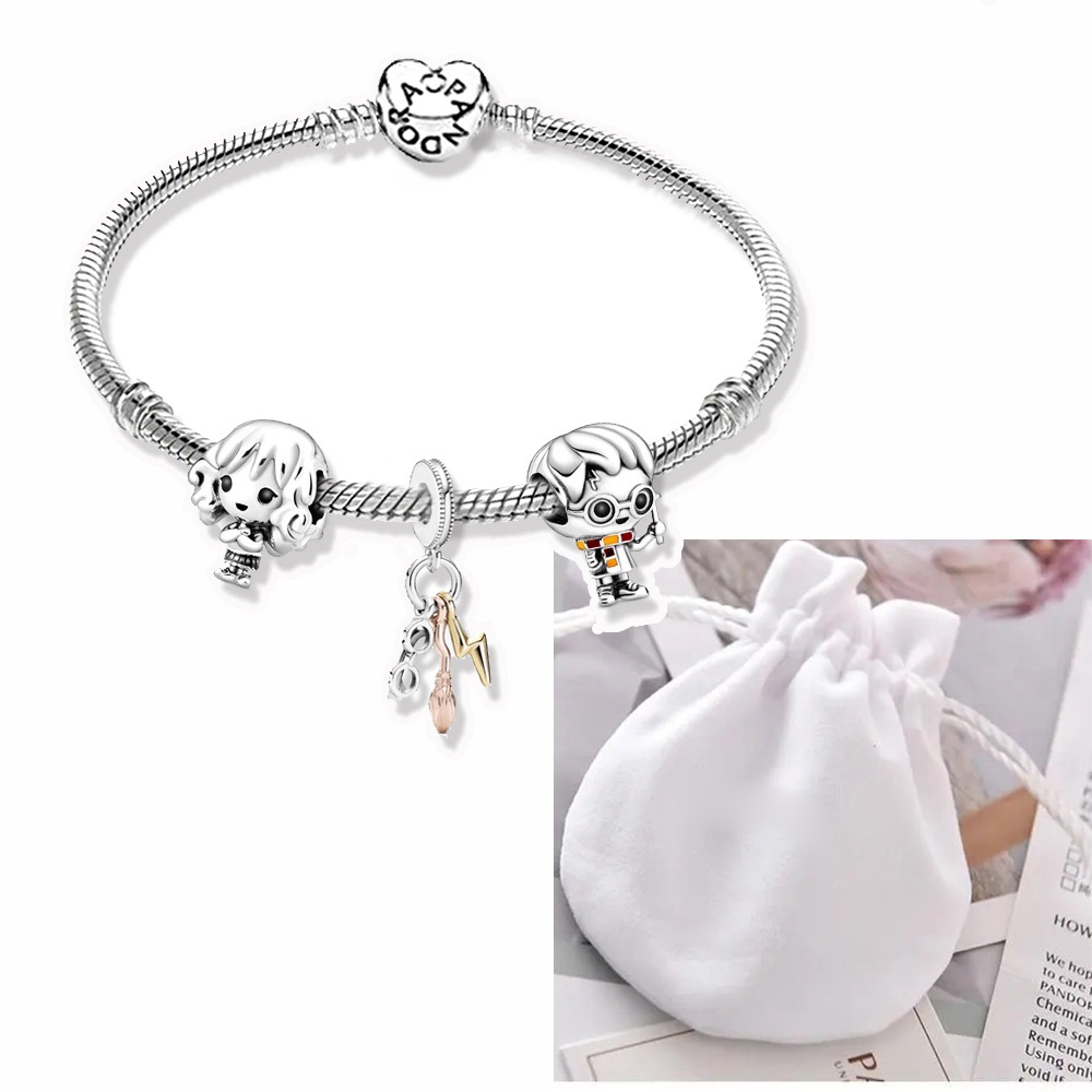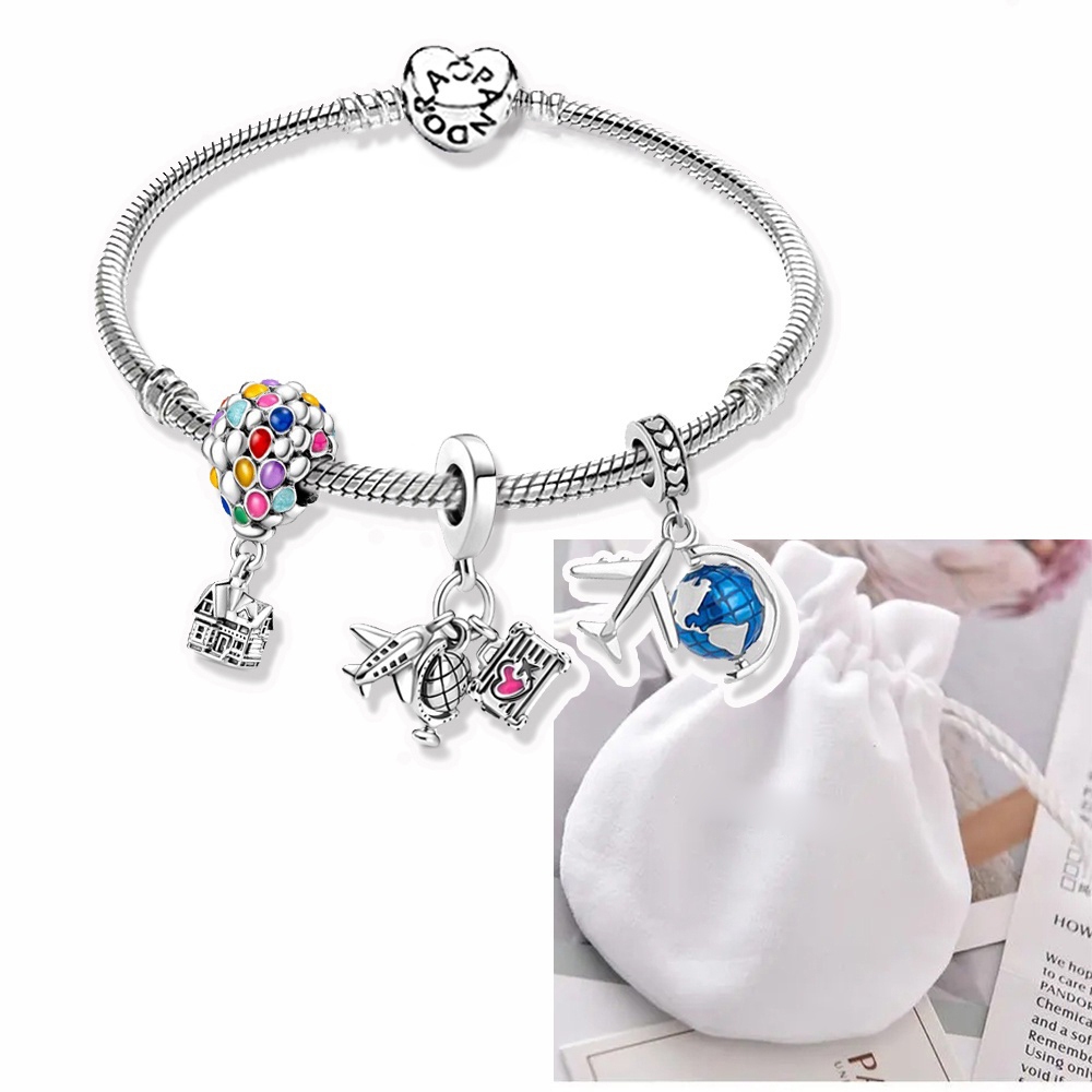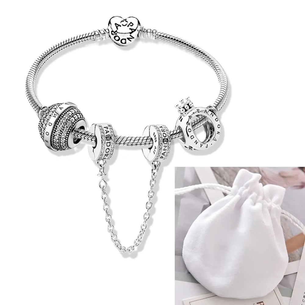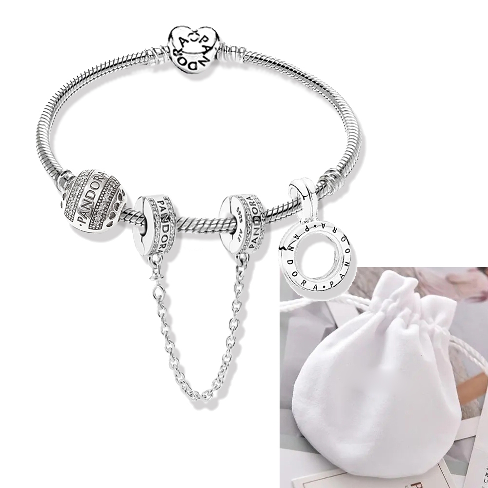 Pulseira Coração De Prata 925 Berloques kit Com 3 Pingentes Bracelete Letras Pretas Pulseiras Incluído Bolsa de veludo