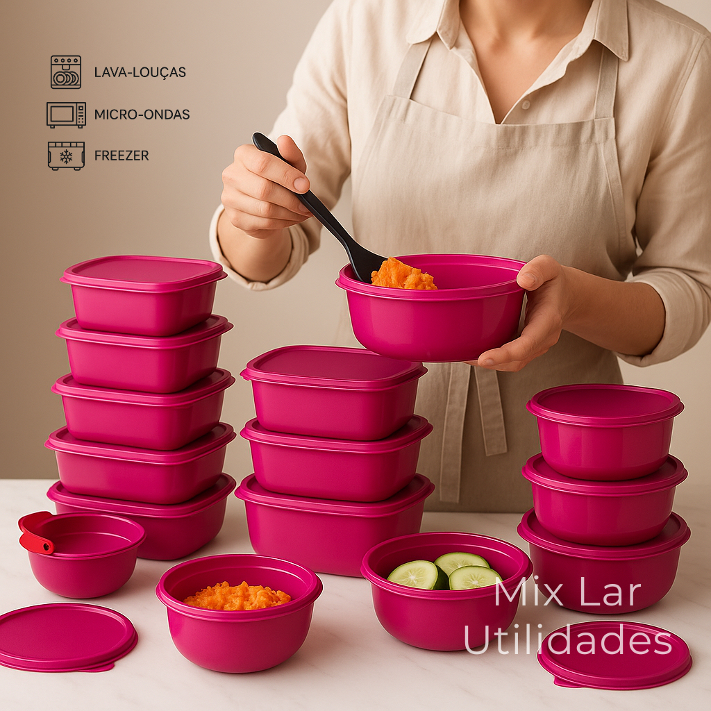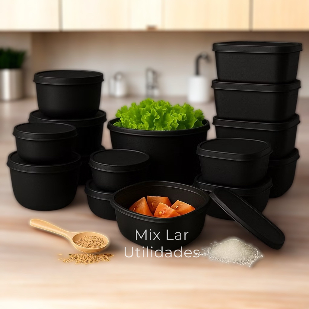 Kit 15 potes plásticos herméticos para cozinha