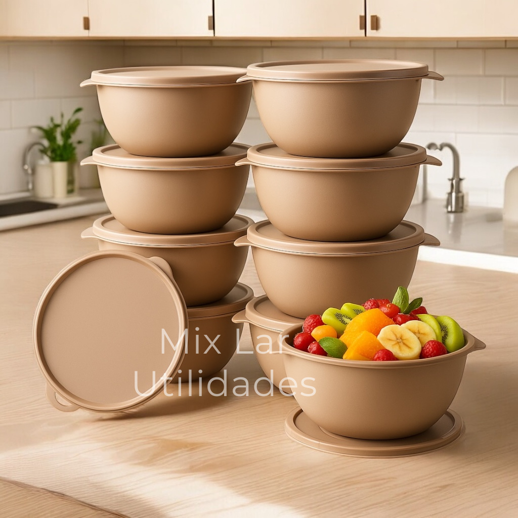 Kit de potes herméticos redondos 10 peças com 1 litro para cozinha