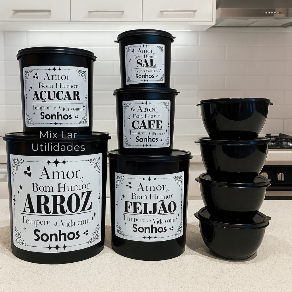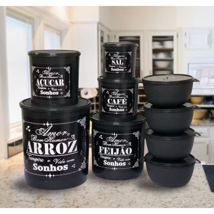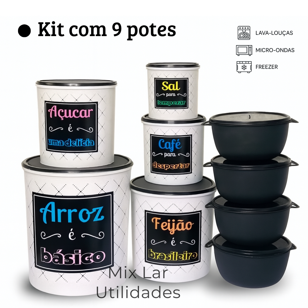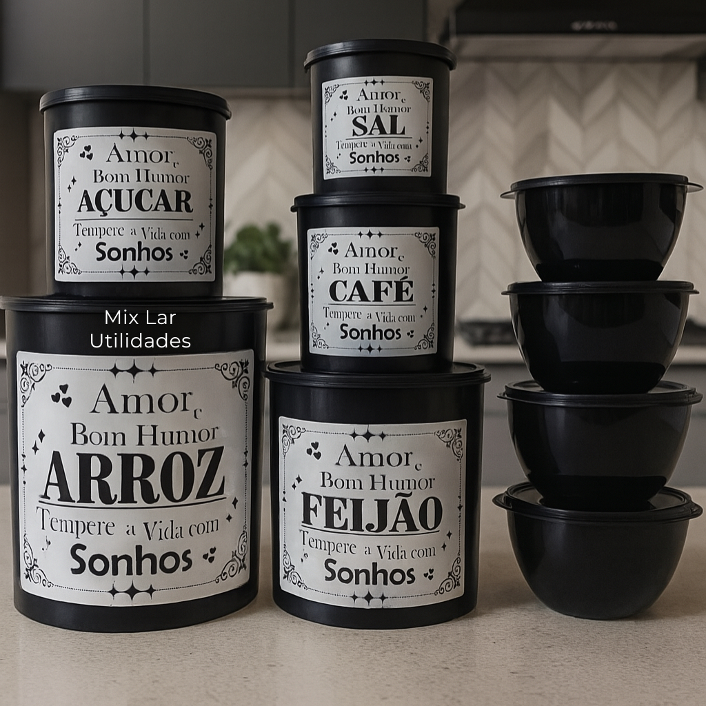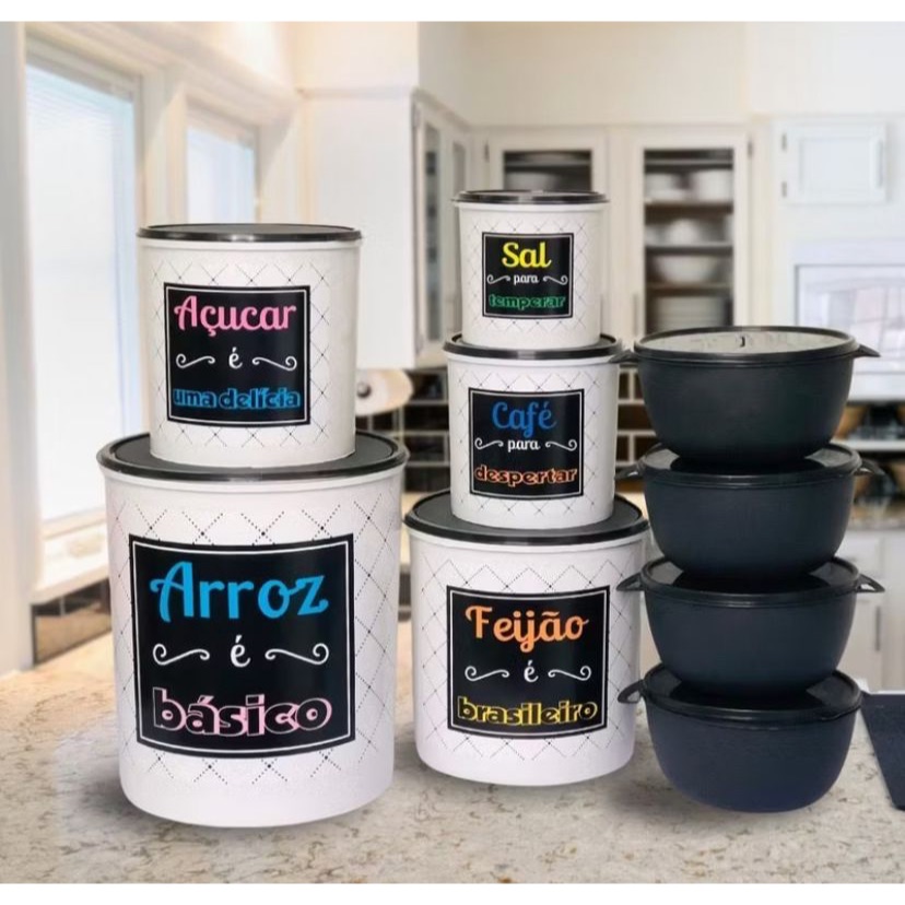 Kit potes de mantimentos cozinha com 9 peças de plástico decorado