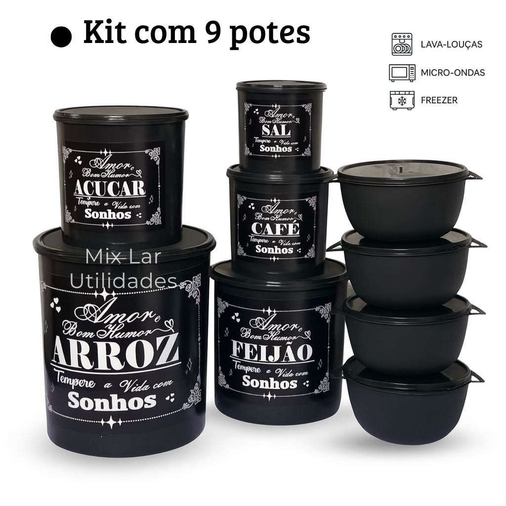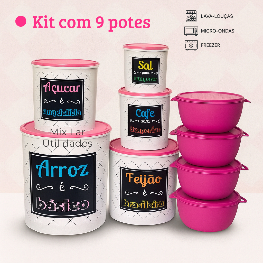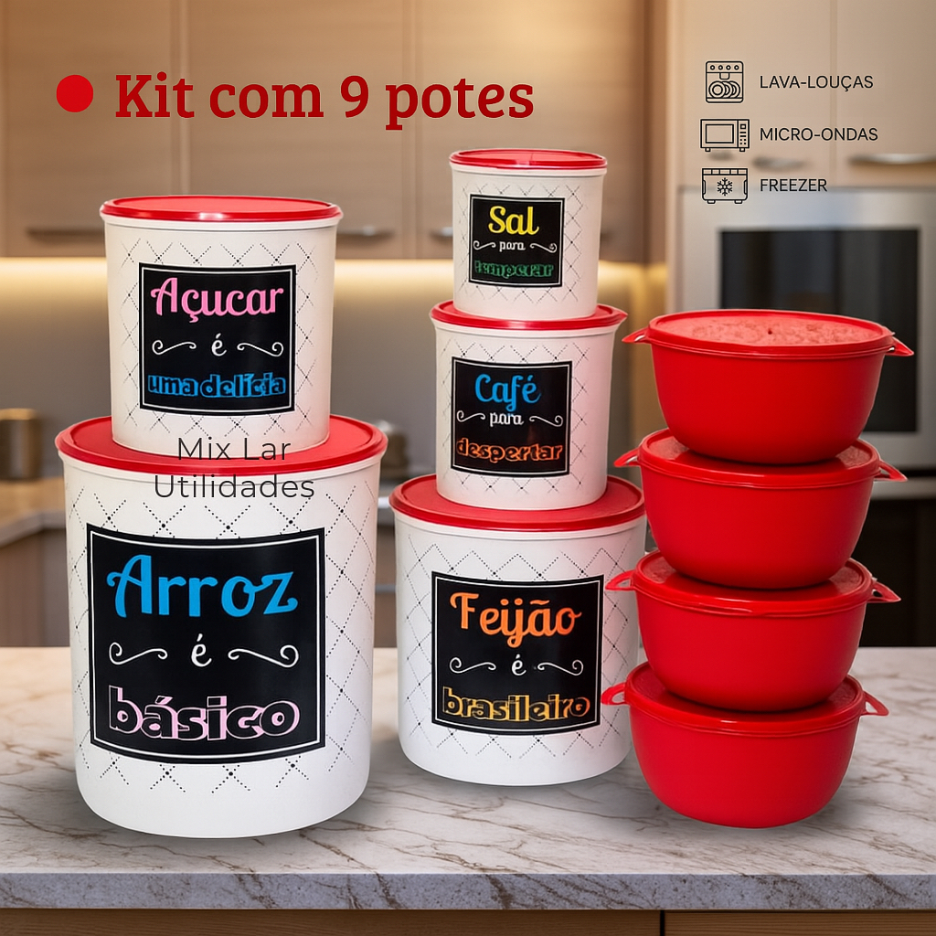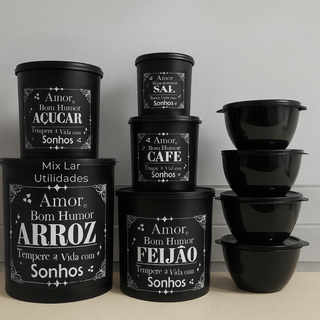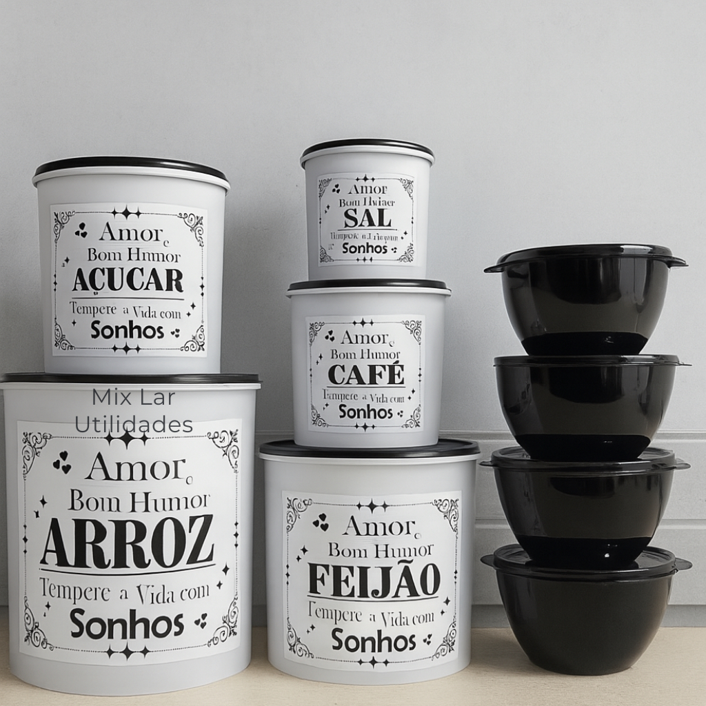 Kit potes de mantimentos cozinha com 9 peças de plástico decorado
